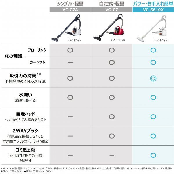 - ゴミの種類や量により、性能が異なる場合があります。使用後は定期的にお手入れを行ってください。