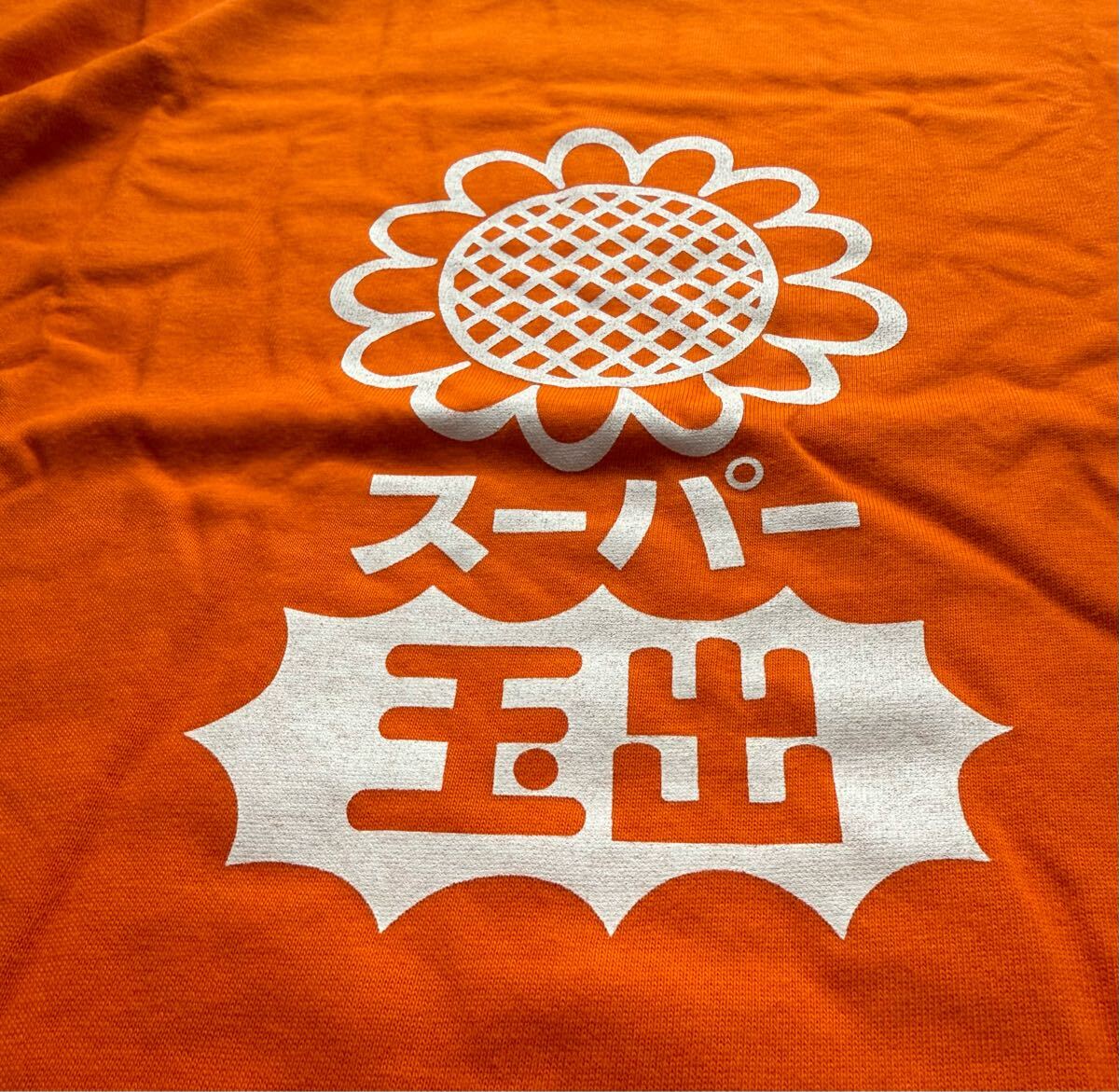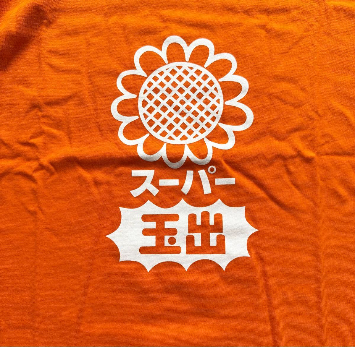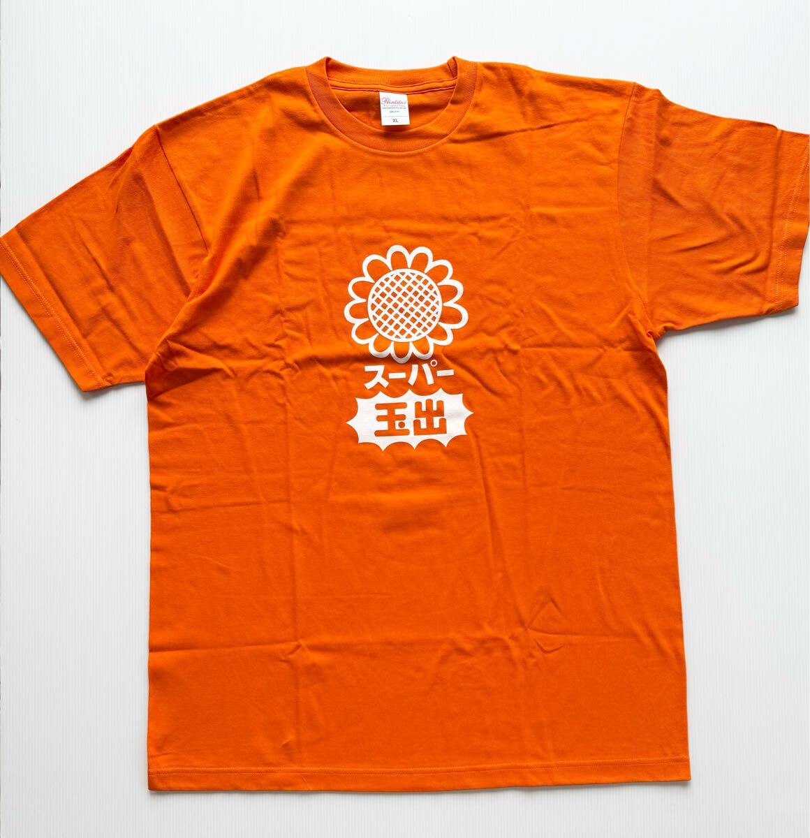 玉出 Tシャツ XL 半袖 昭和レトロ ダサカワ 玉出 オレンジ ひまわり 大阪 未使用 タマデ デイジー カワイイ kawaii 女性オーバーサイズOK