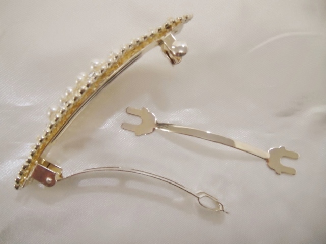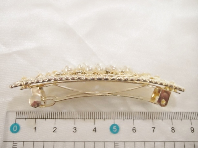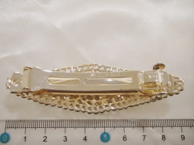 バレッタ本体、クリップ等にメッキ加工が施されておりますが経年劣化による色の変色が生じる場合がございます。