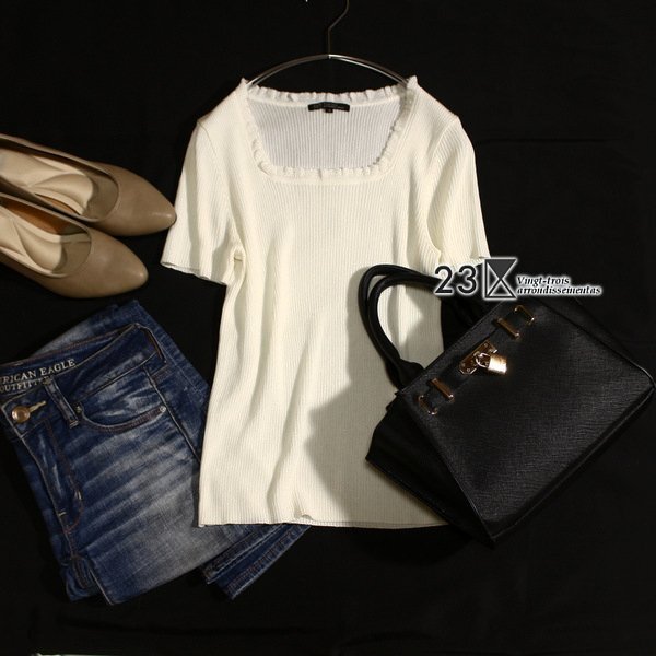 美品 オンワード樫山 23区 リブストレッチ 綺麗め ニット プルオーバー 38号 M 春 夏 25D03