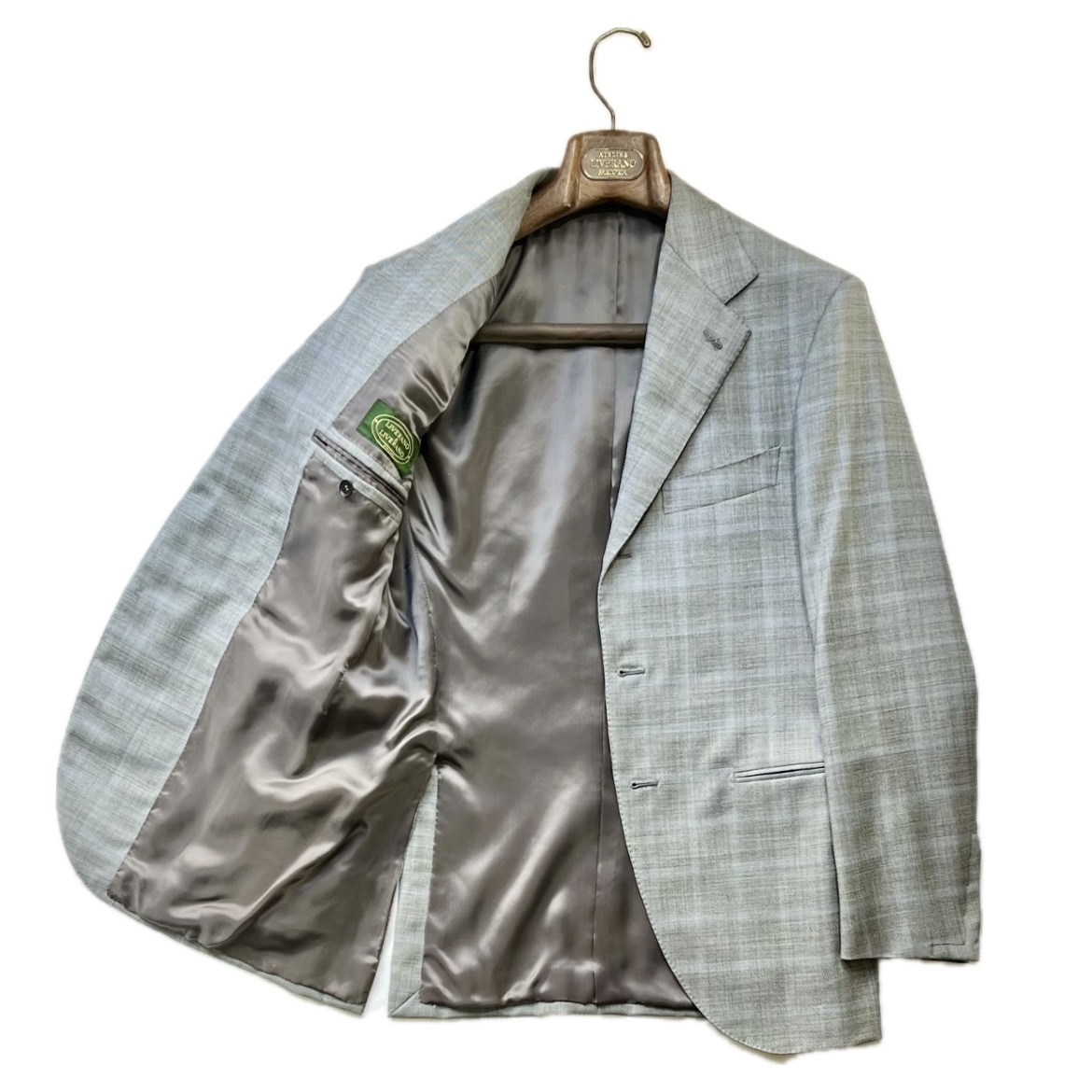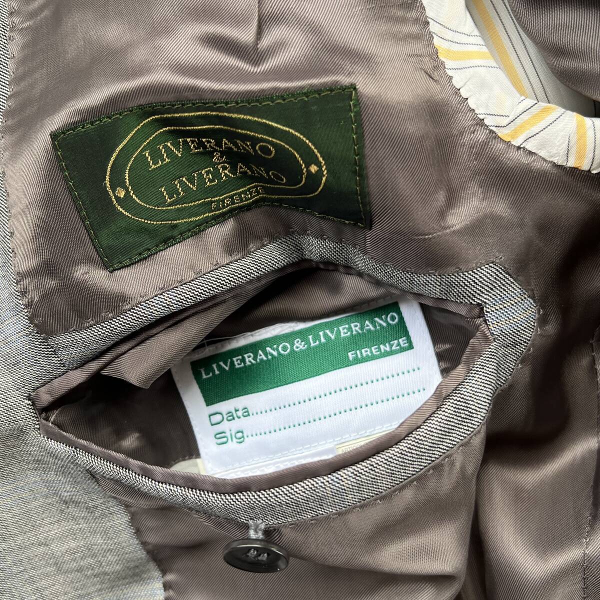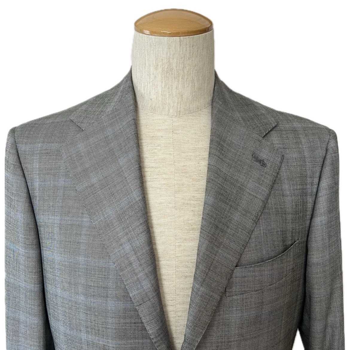 ・型紙が日本人体型と相性がいいことで日本人にリピーターが多いリベラーノリベラーノのリベラーノ本人が好む繊細なチェックパターンのスーツです。直近のリベラーノのスーツの中心価格帯は70~80万円と高騰していますので概ね国内正価の7割引き程度になるかと思います。キートン、アットリーニ、ブリオーニ等をワードローブのスーツの基準とされている方にお勧めの逸品です。当方のコレクションの一着ですが若干のワードローブ整理に伴い出品いたします。残布、袖口用ボタン、スペアボタン大小各一付属(ハンガーは付属いたしません)
