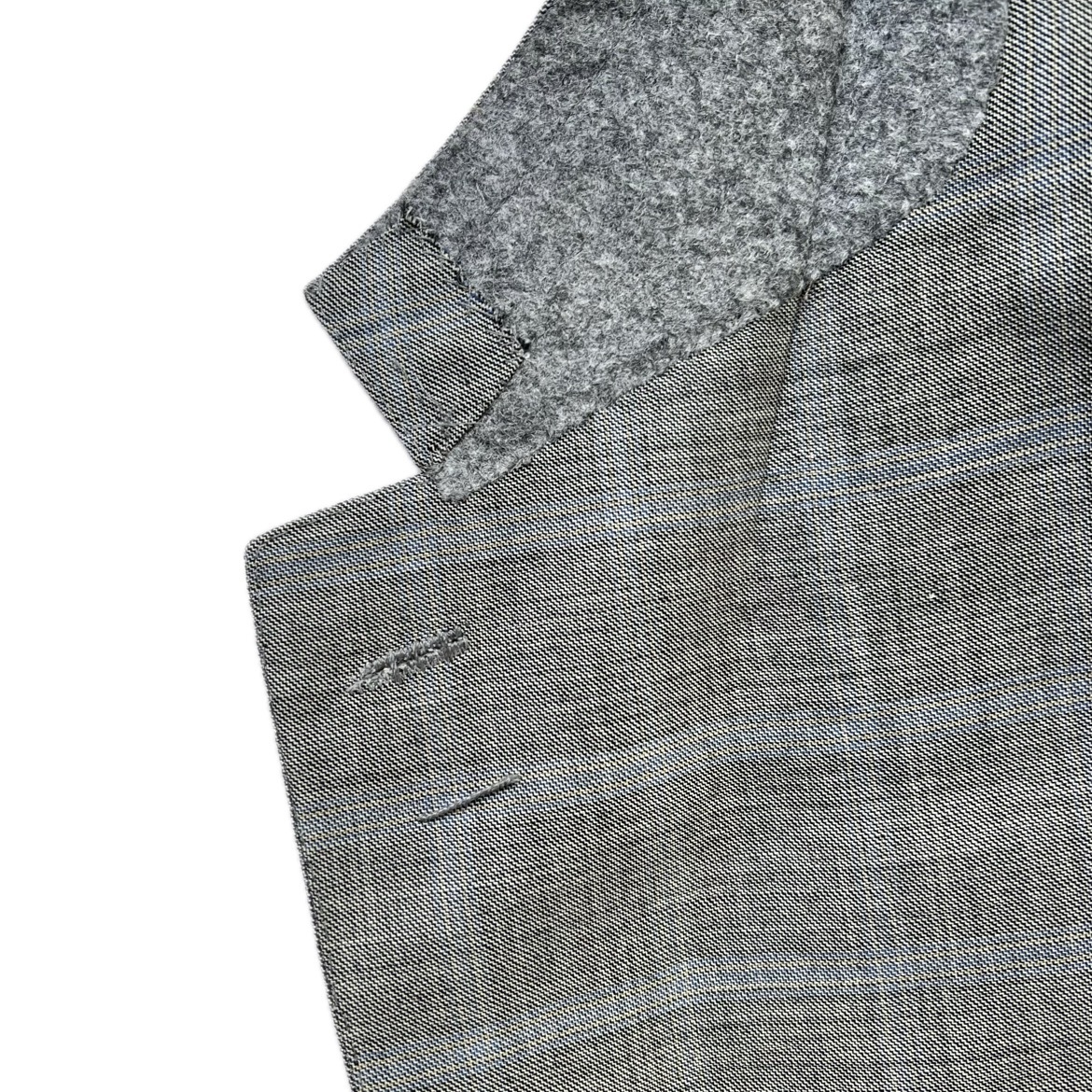 ・寸法(ジャケット)着丈(衿下から):73.5cm 肩幅:45.5cm 脇下身幅:50cm(両脇下を直線計測)袖丈:61cm(袖口未処理)サイドベンツ寸:25.5cm ハーフウエスト(第二ボタン付け位置から背面の背中心線まで):46cm