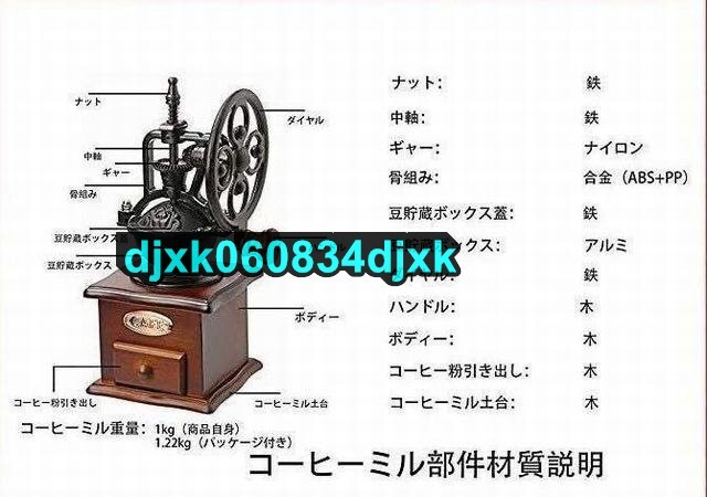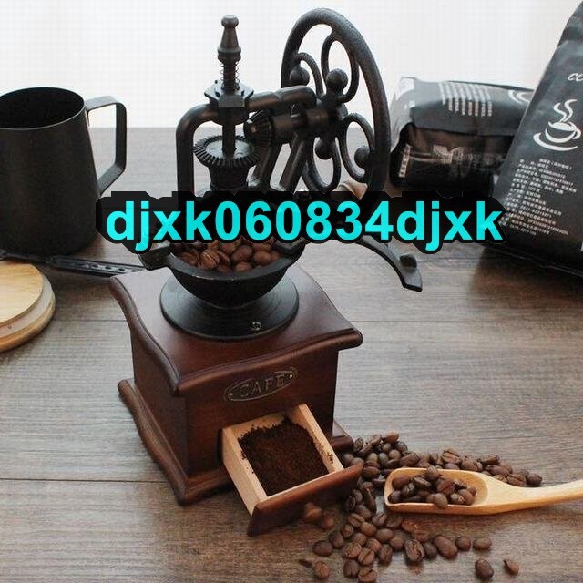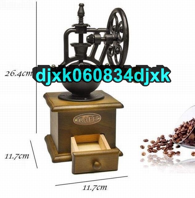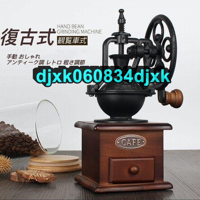 手挽き コーヒーミル セラミック刃 手動 家庭用 木製 粗さ調節 レトロ 観覧車式 インテリア