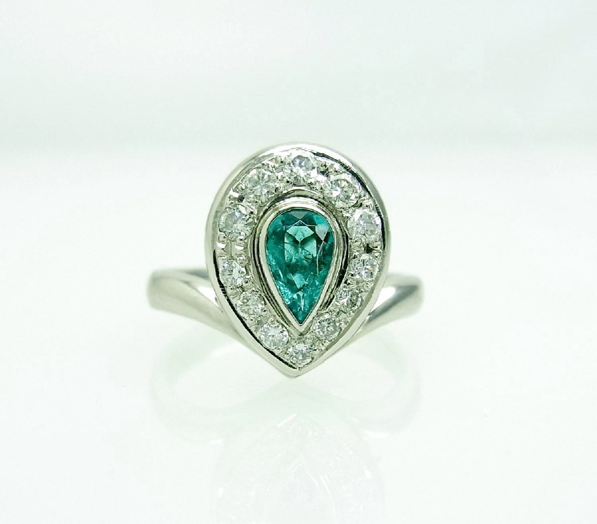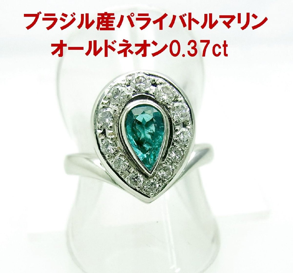 オールドネオン系色 ブラジル産0.37ct天然パライバトルマリン ダイヤ取巻 プラチナリング 中宝鑑付 動画あり 送料込
