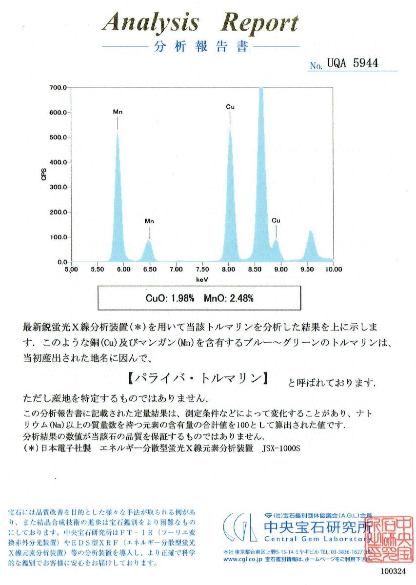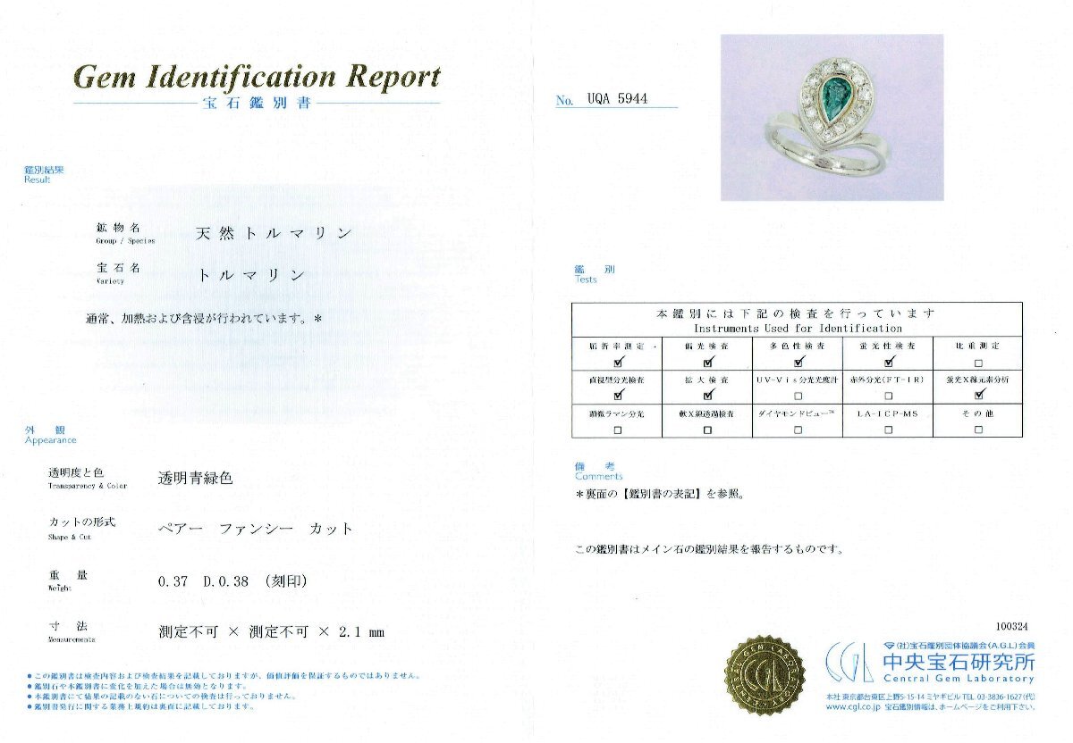 中央宝石研究所鑑別書付