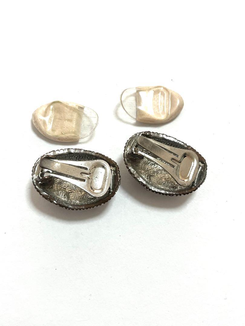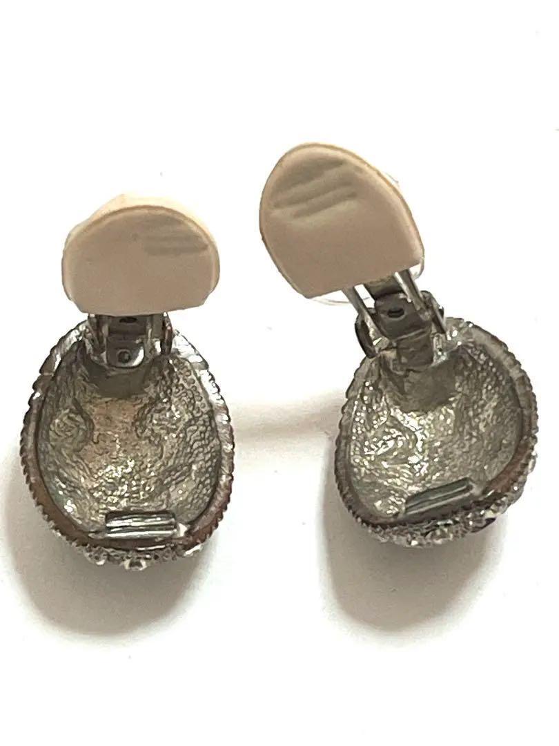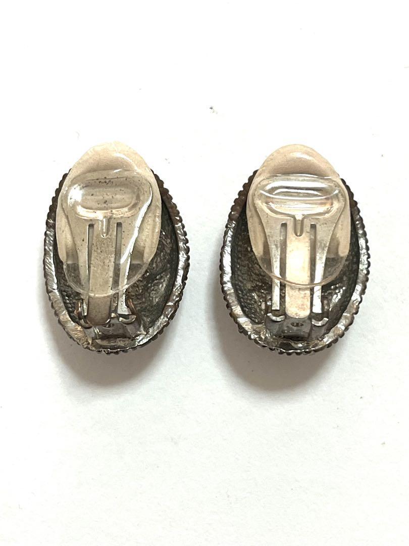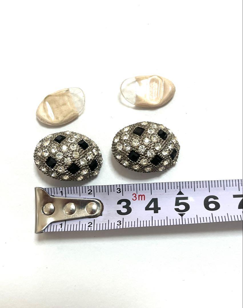 黒とクリスタルのオーバル型イヤリング、クリアクリップ式バック付き。ヴィンテージ 1980年代 アールデコ風