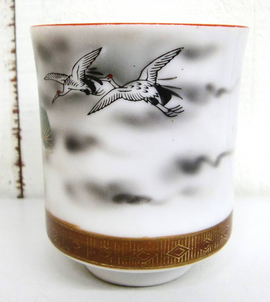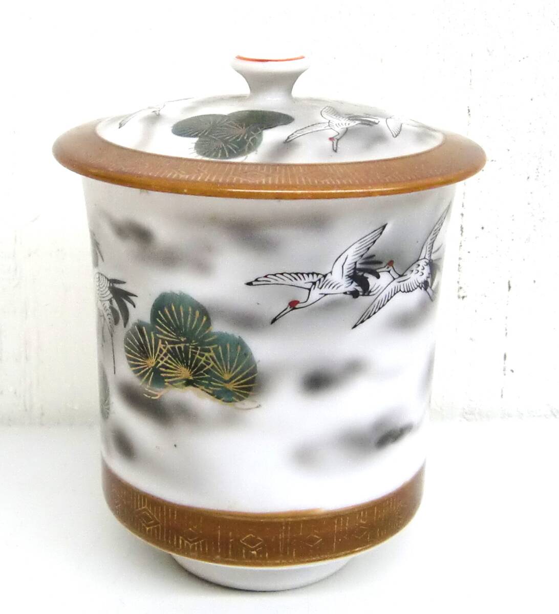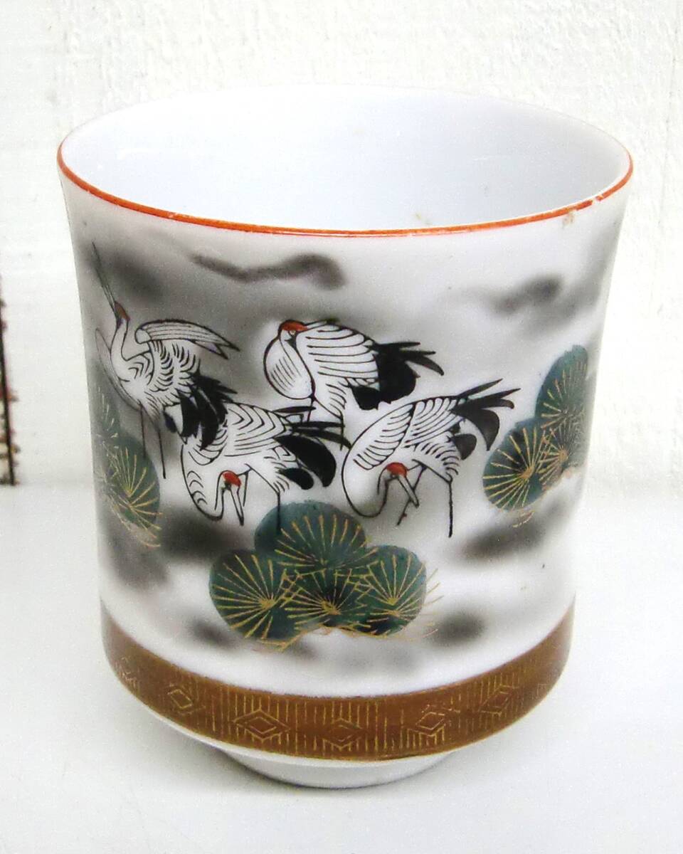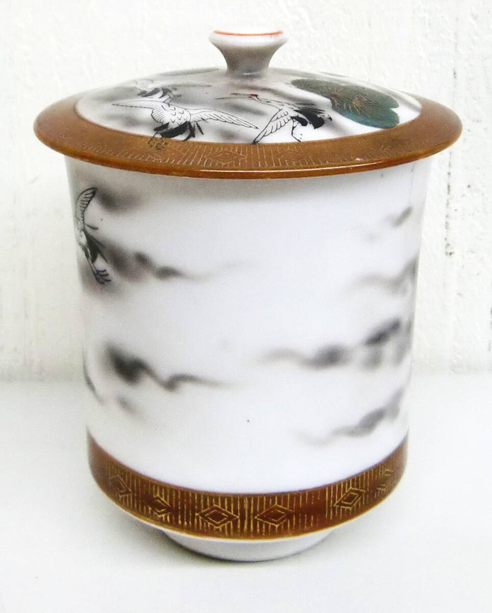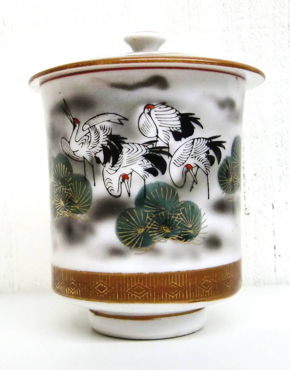 伝統工芸 工芸品 工芸美術 *九谷焼 *蓋付き 湯呑 *金彩 色絵 鶴 松 模様 *和食器 茶碗 湯呑 茶器 *箱と中身が違います。 梱包の為の箱として利用しておりますのでご了承ください。 |