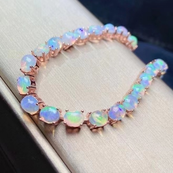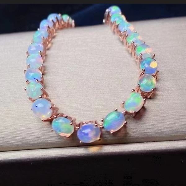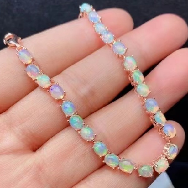 鑑別付き、白いファイヤーオパールストーンリンクブレスレット、4x5mm、高級ジュエリー、希望小売価格15500円