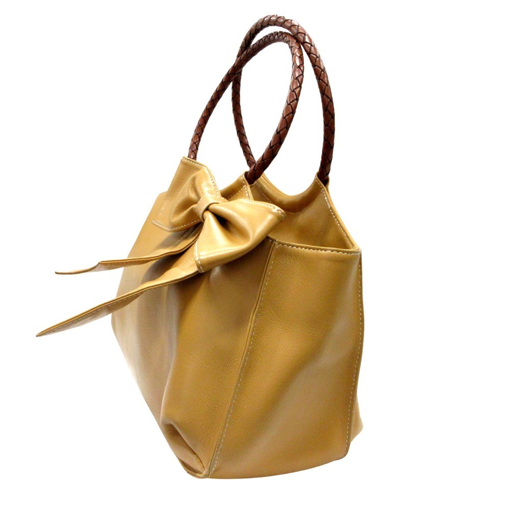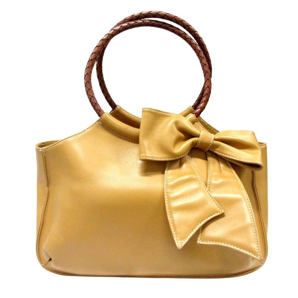 商品名:Kitamura キタムラ レザー リボン ハンドバッグ 編み込みハンドル 本革 かばん 鞄 ベージュ キャメル