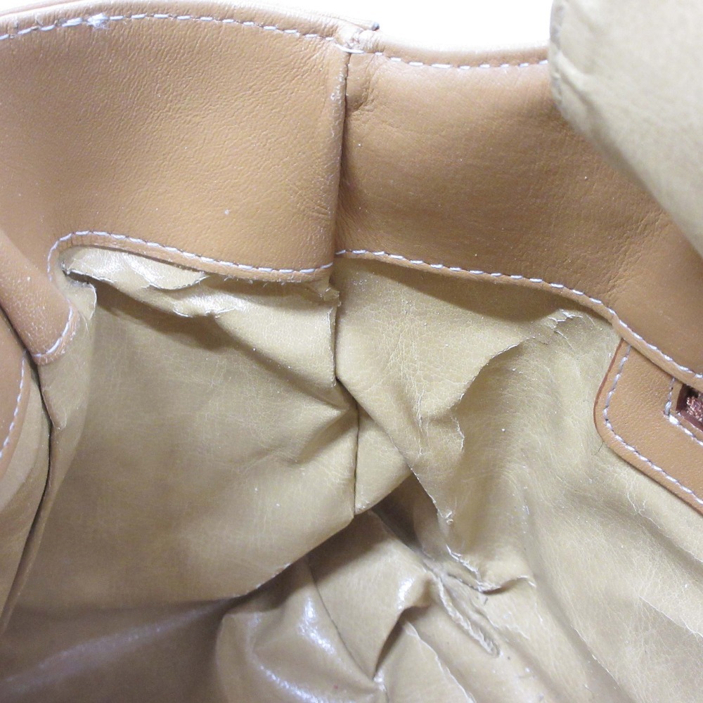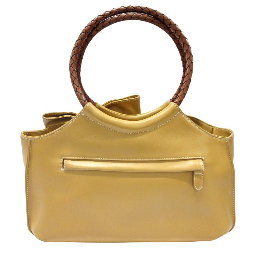 良品 Kitamura キタムラ レザー リボン ハンド バッグ 編み込みハンドル 本革 かばん 鞄 ベージュ キャメル
