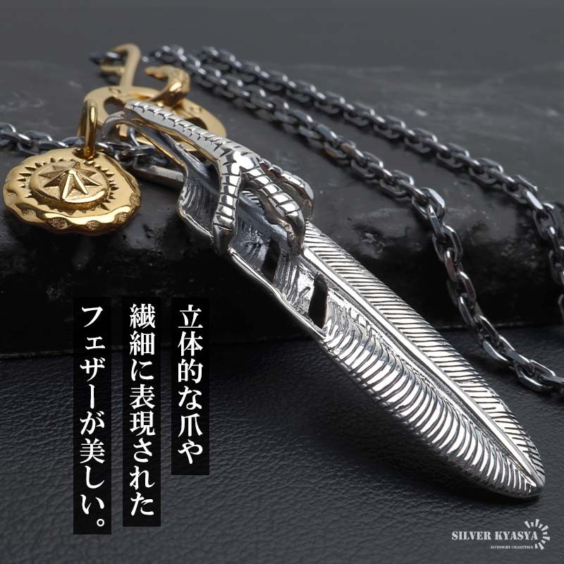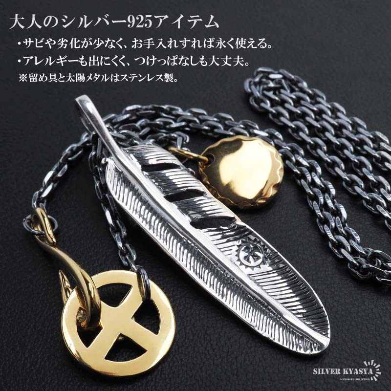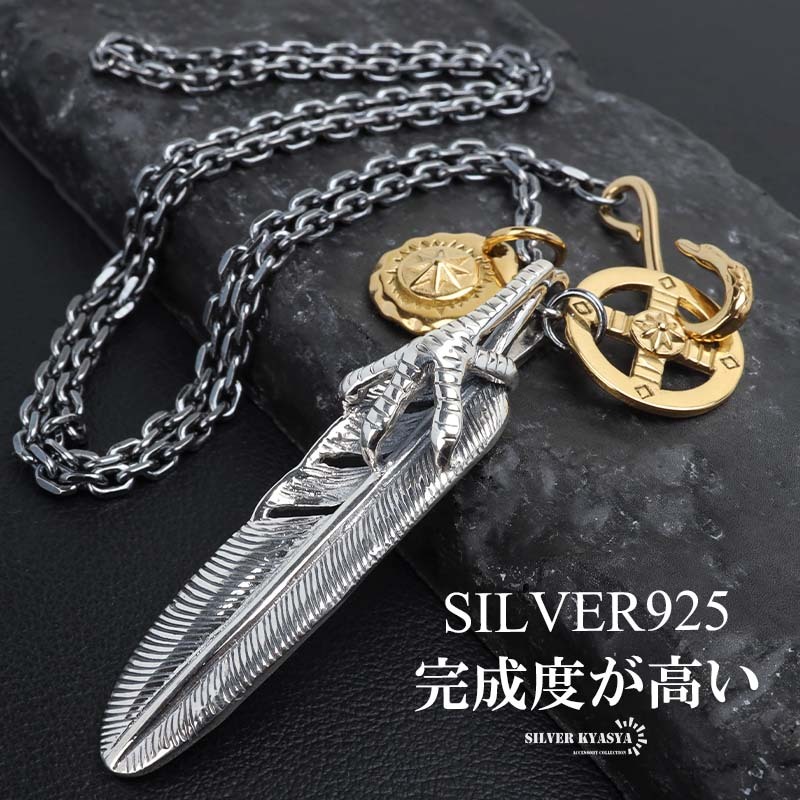 シルバー925 フェザーネックレス インディアンジュエリー メンズネックレス 50cm 60cm シルバー 男性 金アレ対応