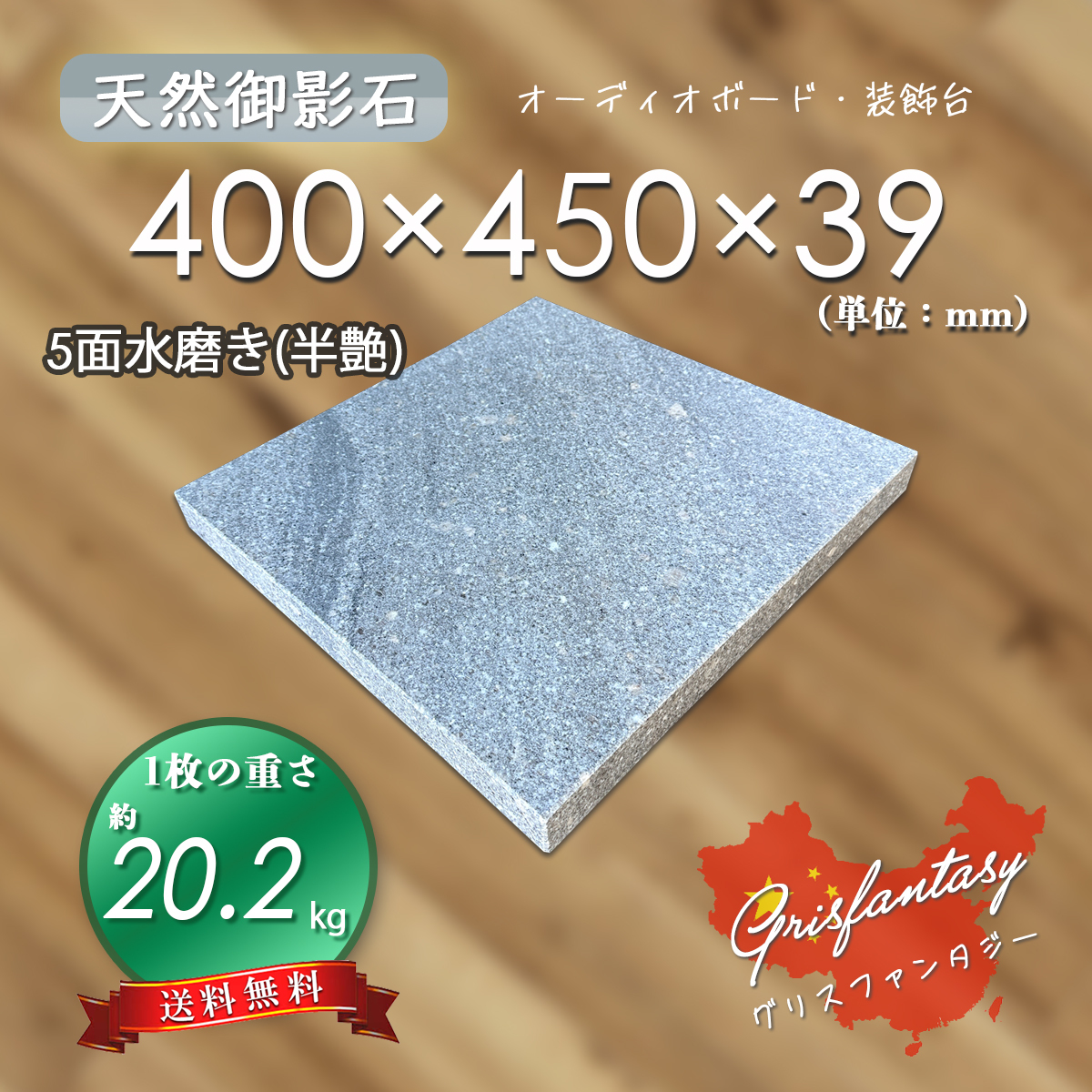| 【高級天然御影石】 オーディオボード グレー系 グリスファンタジー 400mm×450mm×39mm 5面水磨 新品 即決 送料無料 ★超特価★ | ||||