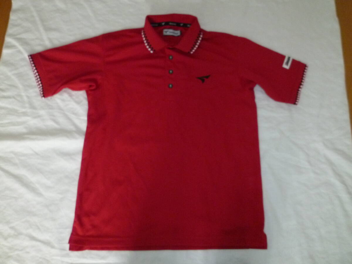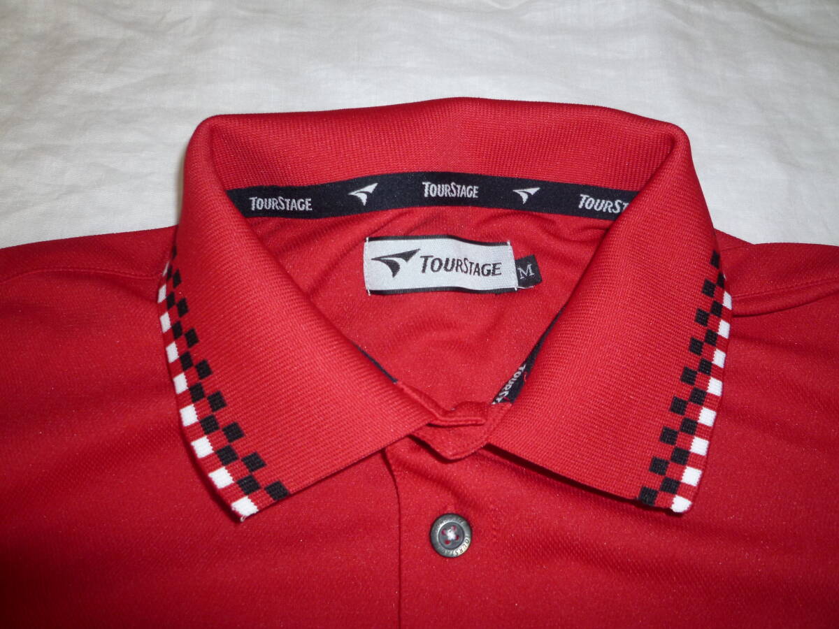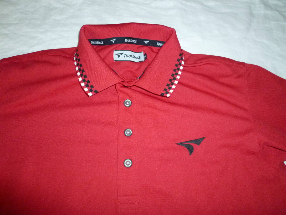 USED ツアーステージ ゴルフ 半袖ドライポロシャツ レッド M ブリヂストンワッペン KM-QTM04A