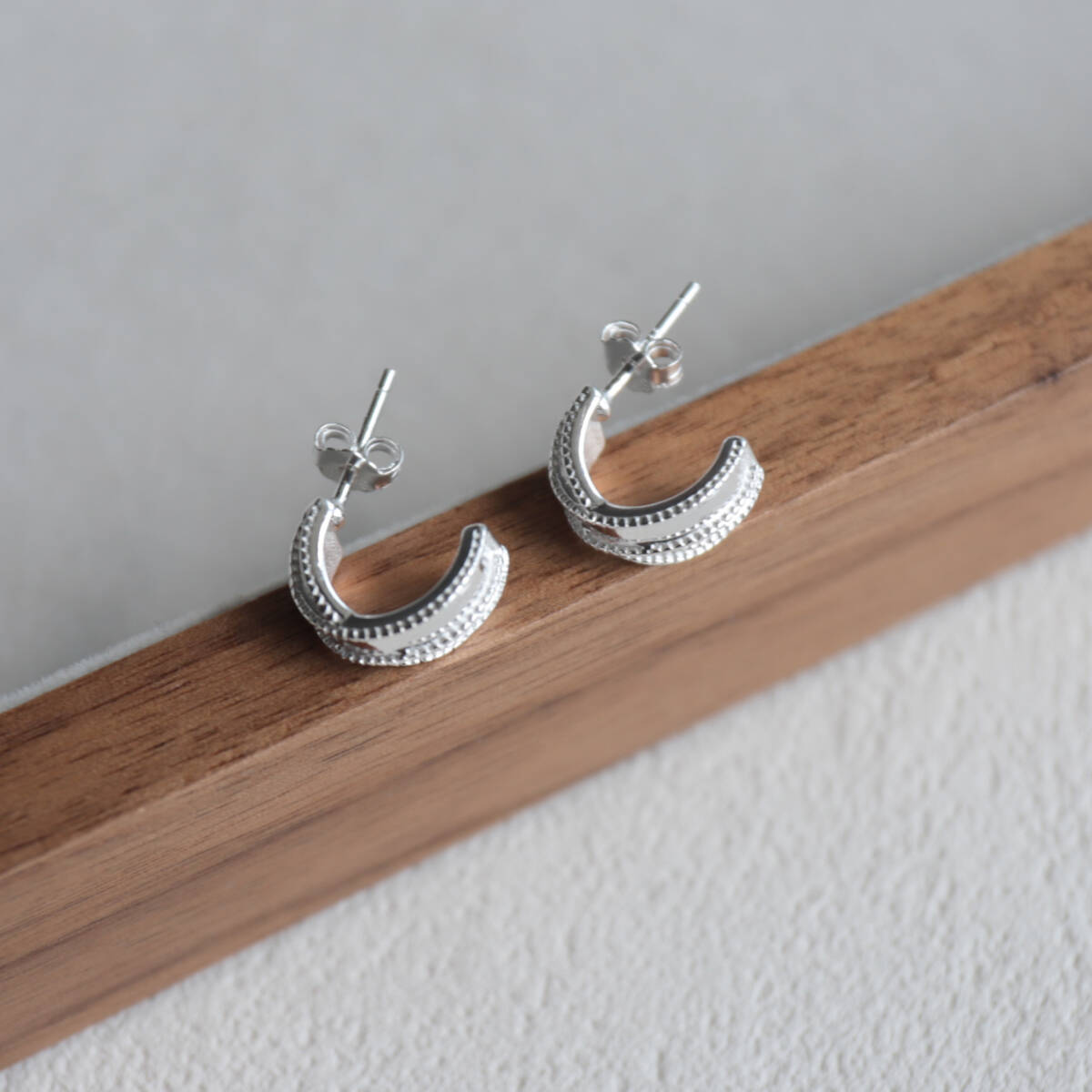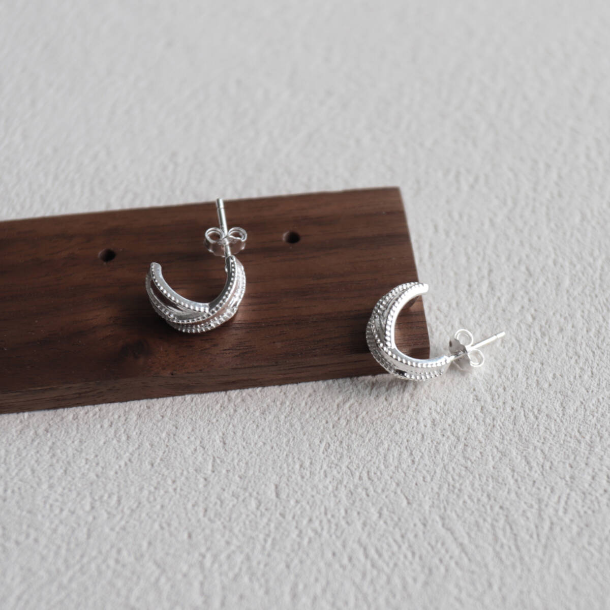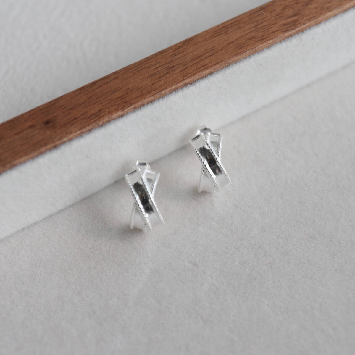ピアス 925シルバー レディース レトロ ダブルフープクロスイヤリング 金属アレルギー対応