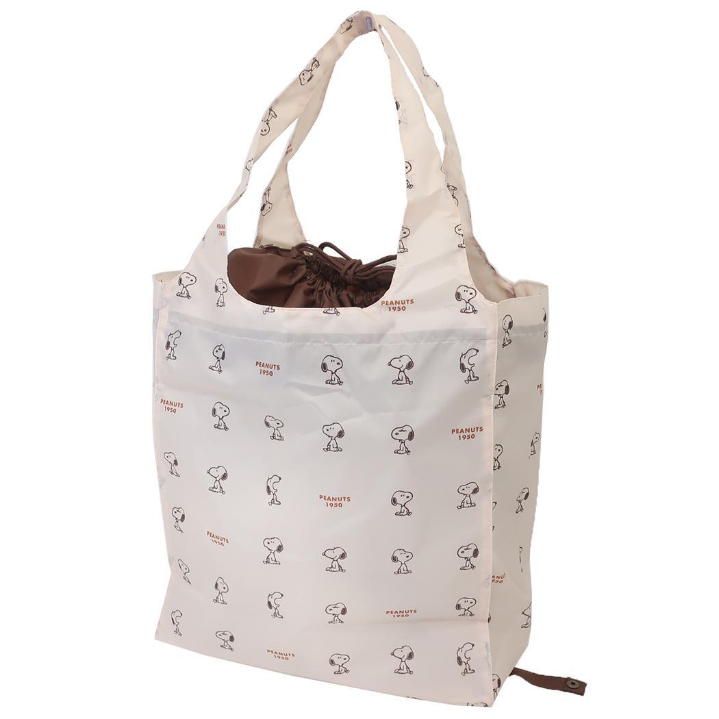スヌーピー エコバッグ ワイド底板付エコバッグ おすわりタイム ピーナッツ カミオジャパン お買い物かばん 折りたたみ キャラクタ