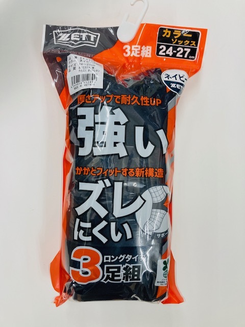 新品即決&送料無料!ゼット「3足組ソックス・ネイビー」24~27cm/BK03CL