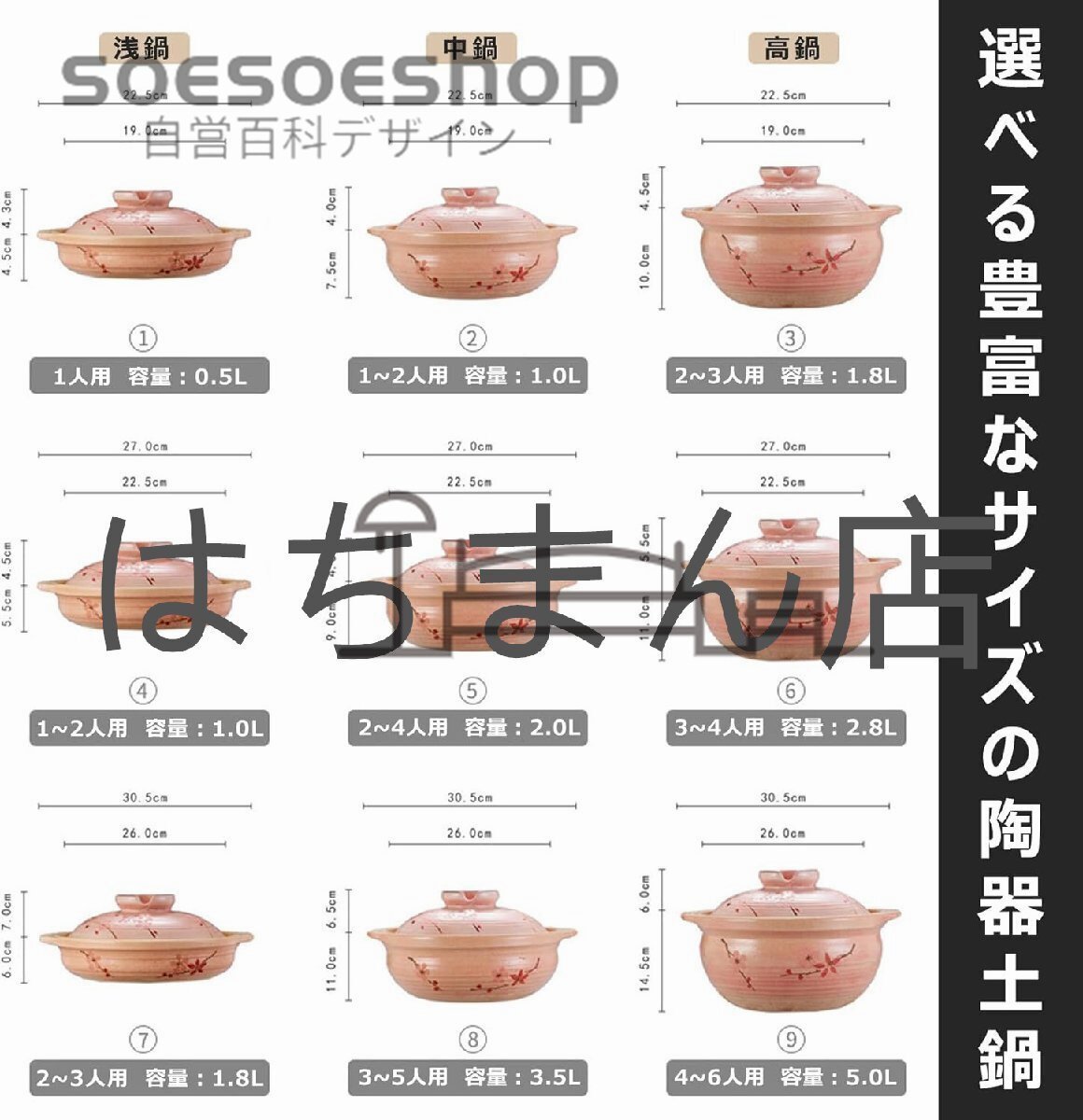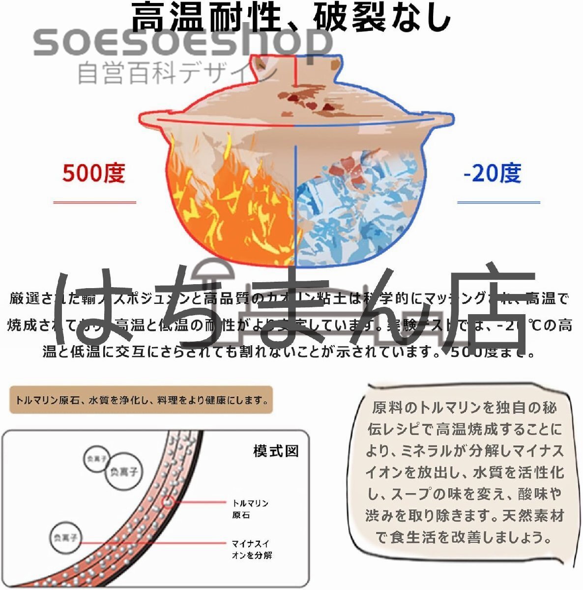 【商品情報】 容量: 1/1.8/2/2.8/3.5/5L。技術: 釉下色 材質:ポット本体:粘土+輸入スポジュメン、蓋:高品質セラミック 対応熱源:ガスコンロ、直火。 (注意:電磁調理器は使用しないでください)