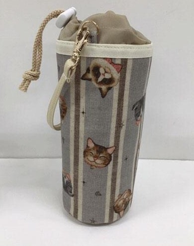 ストライプとの組み合わせがおしゃれな【キメ顔キャット】シリーズの保冷ペットボトルホルダー