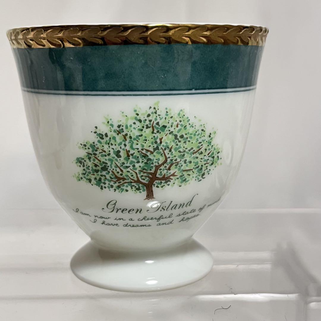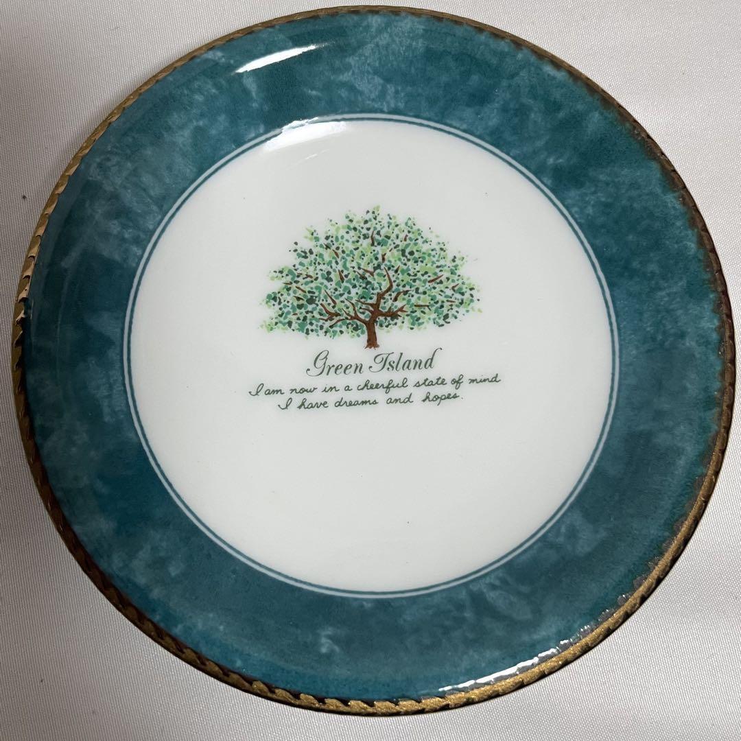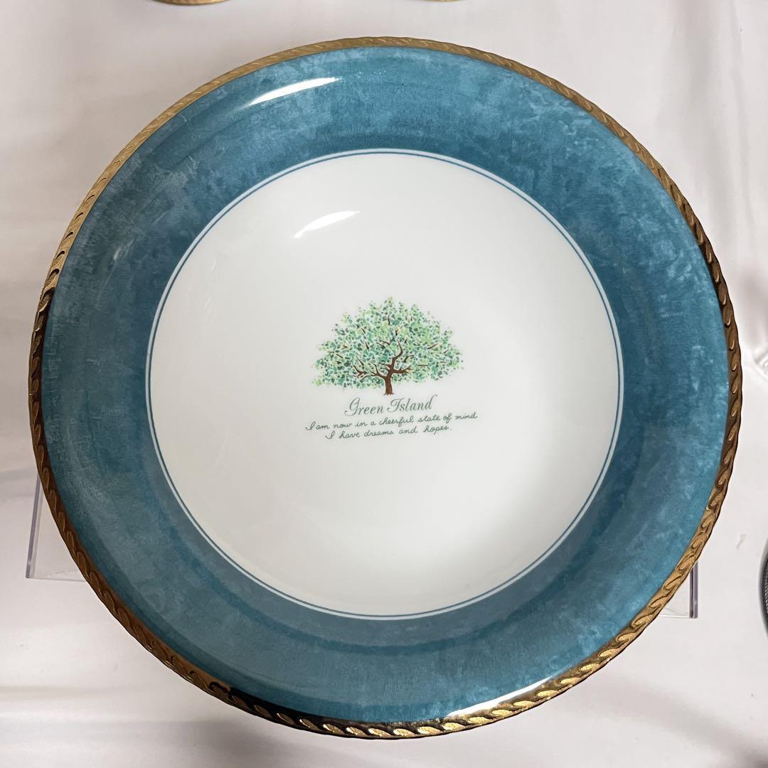 グリーンとゴールドで縁取られたの華やかな食器セットです。