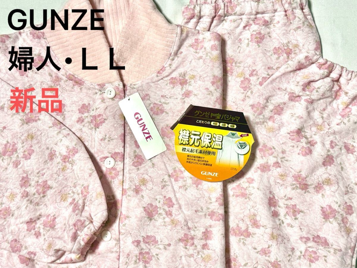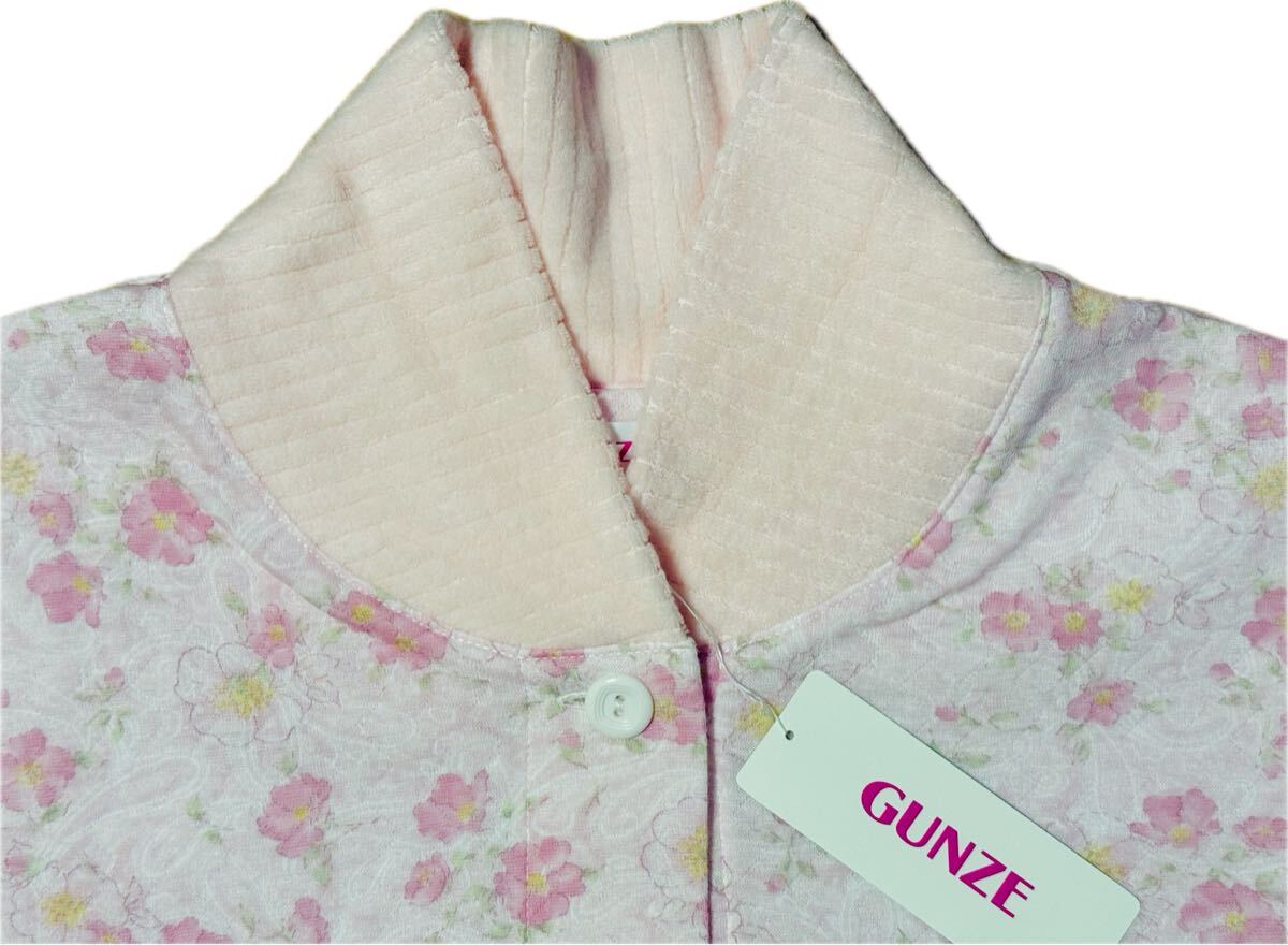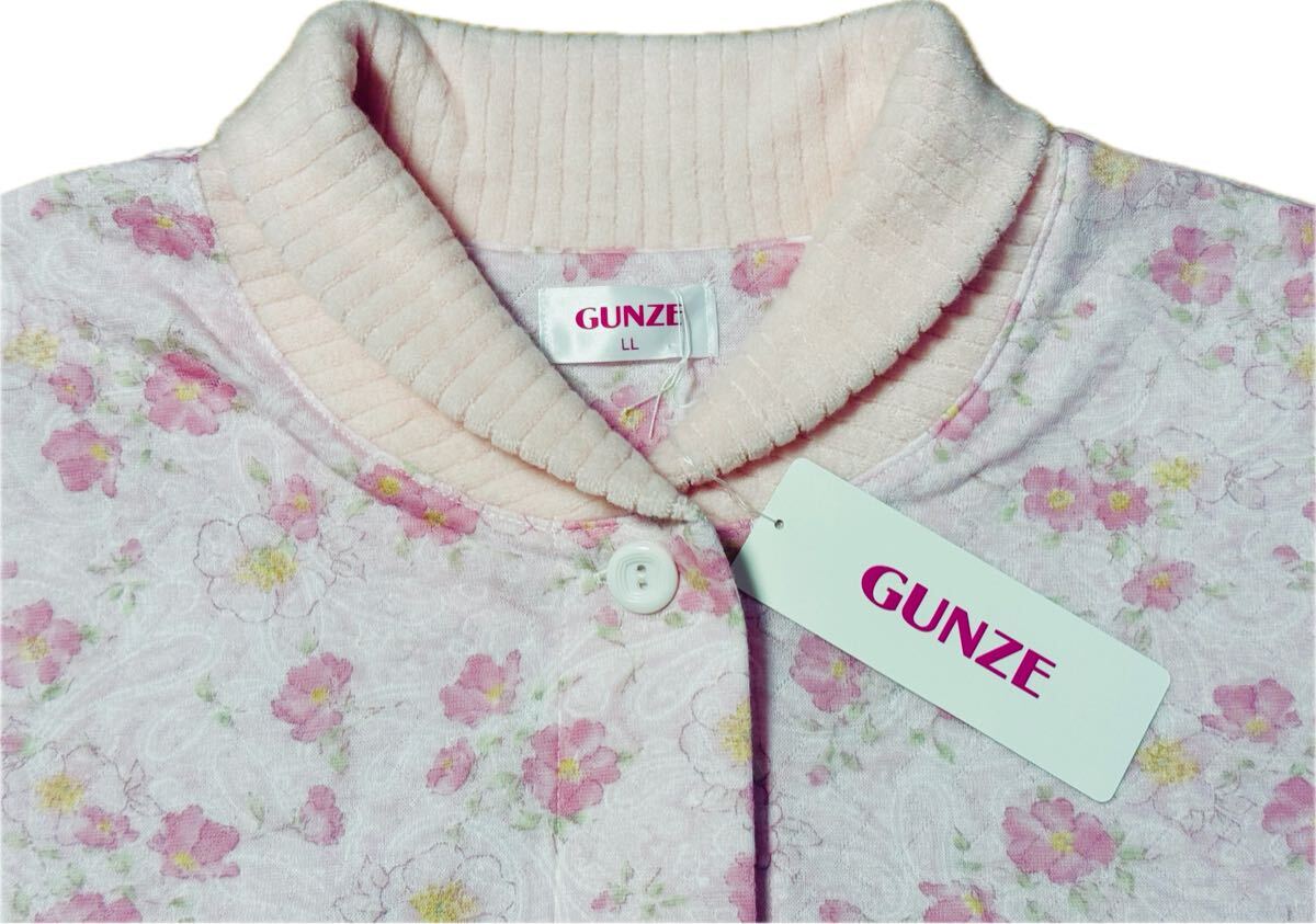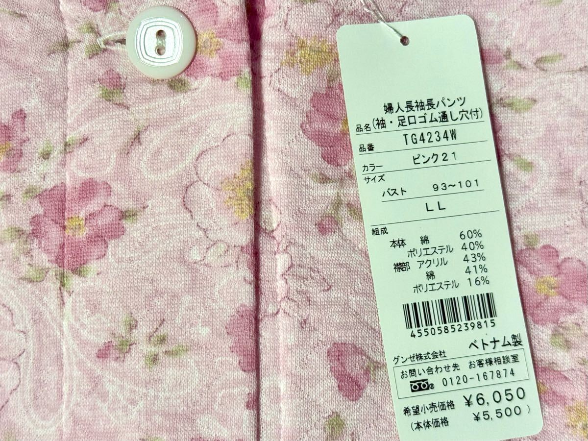 G7 新品即決【LL】定価6,050円 GUNZE グンゼ 長袖長パンツ 前開き 襟付きパジャマ 婦人レディース ブランド 花柄ピンク 襟元起毛