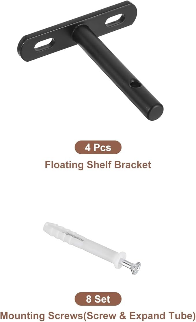 uxcell 4個セット 浮き棚ブラケット 3" 壁取り付けブラインド棚サポート 浮き木製棚用 隠しブラケット ブラック