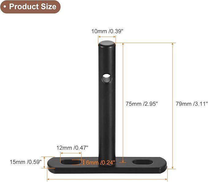 • [浮き棚ブラケット] - 全体サイズは79mm x 70mm x 15mm/3.11" x 2.76" x 0.59"(長さ×幅×高さ)で、ロッドサイズは10mm x 75mm/0.39" x 2.95"(直径×長さ)です。棚板のサイズは100mm x 16.5mm(幅×厚さ)より大きくする必要があります。