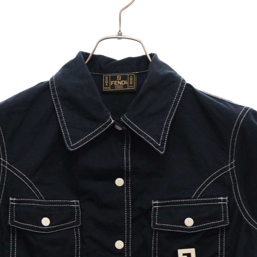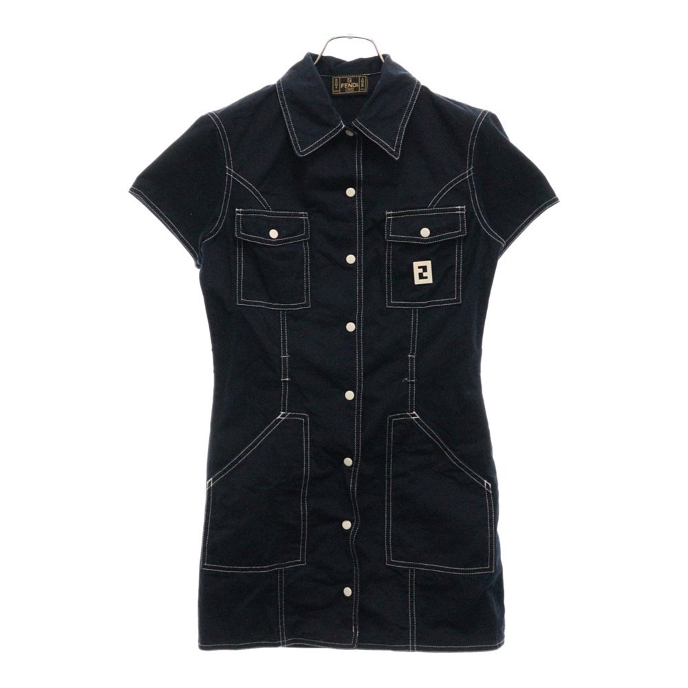 FENDI フェンディ FFボタン 半袖 デニムワンピース ネイビー レディース