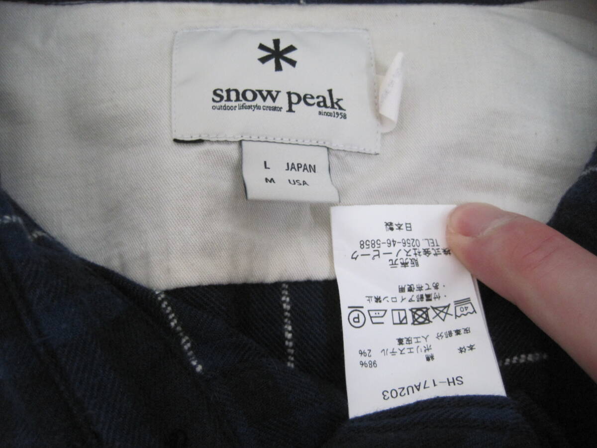 snow peak スノーピーク サイドポケット付きシャツ ネル になります。着用感があり、写真の様な瑕疵があります。カラーはネイビー、サイズはL、綿98%、ポリエステル2%、日本製です。肩幅47cm、袖丈66cm、身幅54cm、着丈76cmです。素人の採寸ですので若干の誤差、商品状態はご了承ください。 落札後は、ノークレーム、ノーリターン、ノーキャンセルでお願いします。発送方法はレターパックです。ほかにも色々出品していますので良かったらご覧ください。