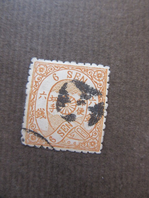 手彫切手 桜洋紙改色カナ入り 6銭(ワ) (使用済、1875年)