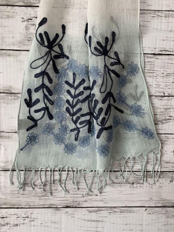 ★ インドシルクコットンアリ刺繍薄手ストール 春夏用 1390 ブルー系② ★ | ||