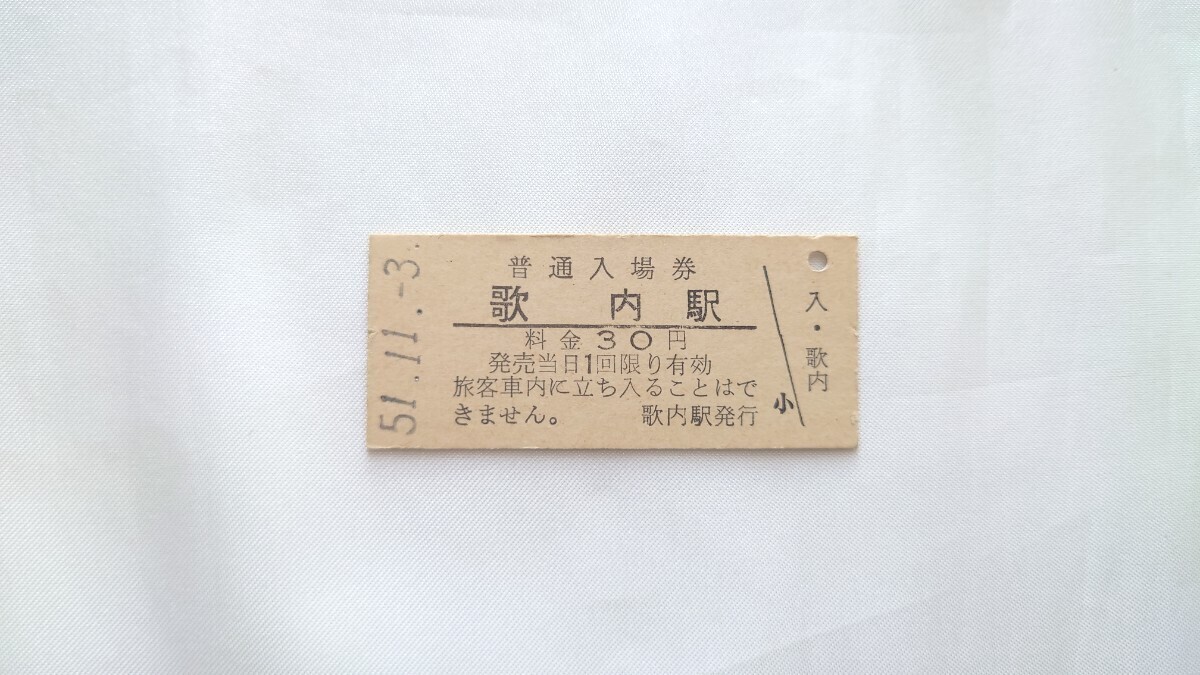 △国鉄(JR北海道)宗谷本線(廃止駅)△歌内駅30円入場券△B型硬券昭和51年
