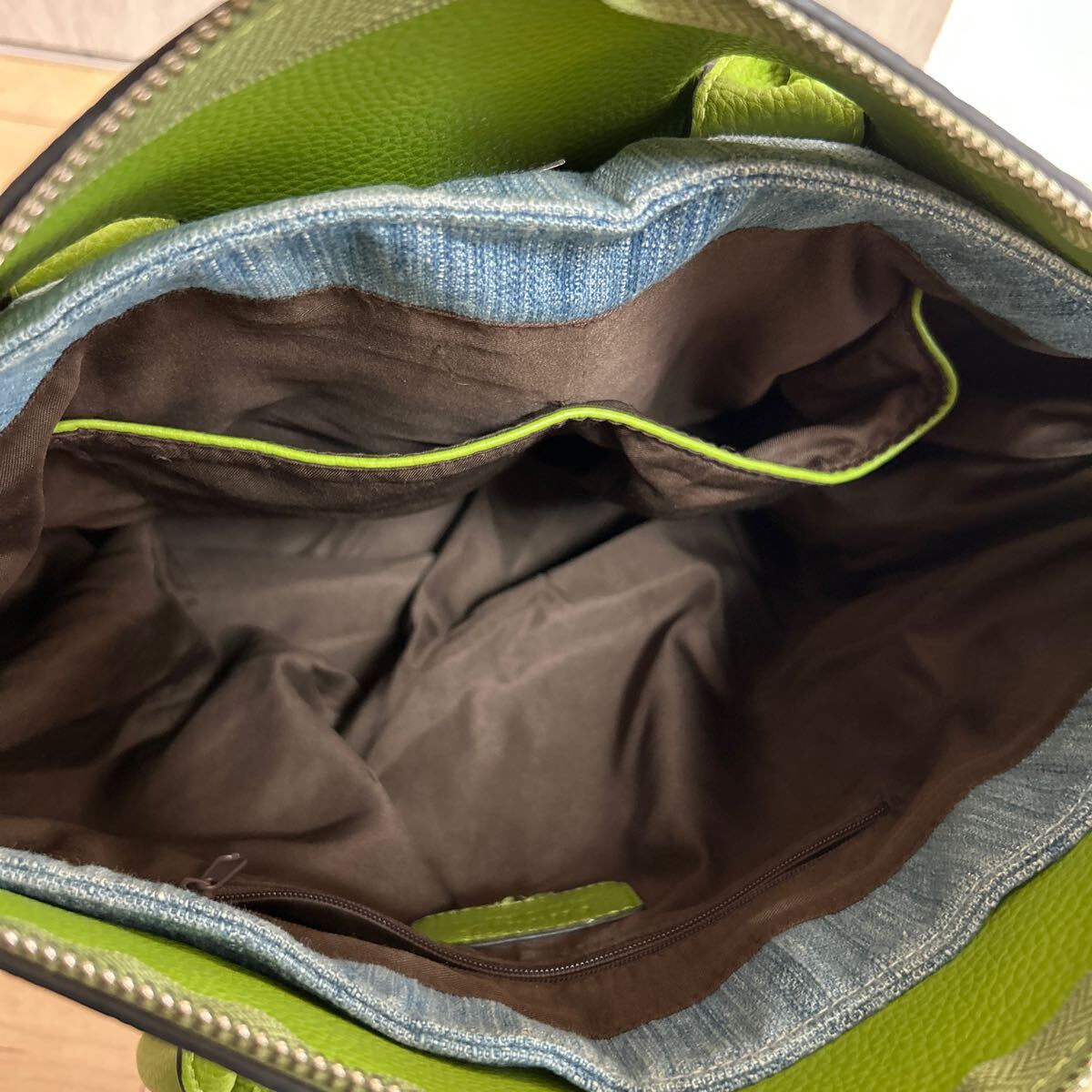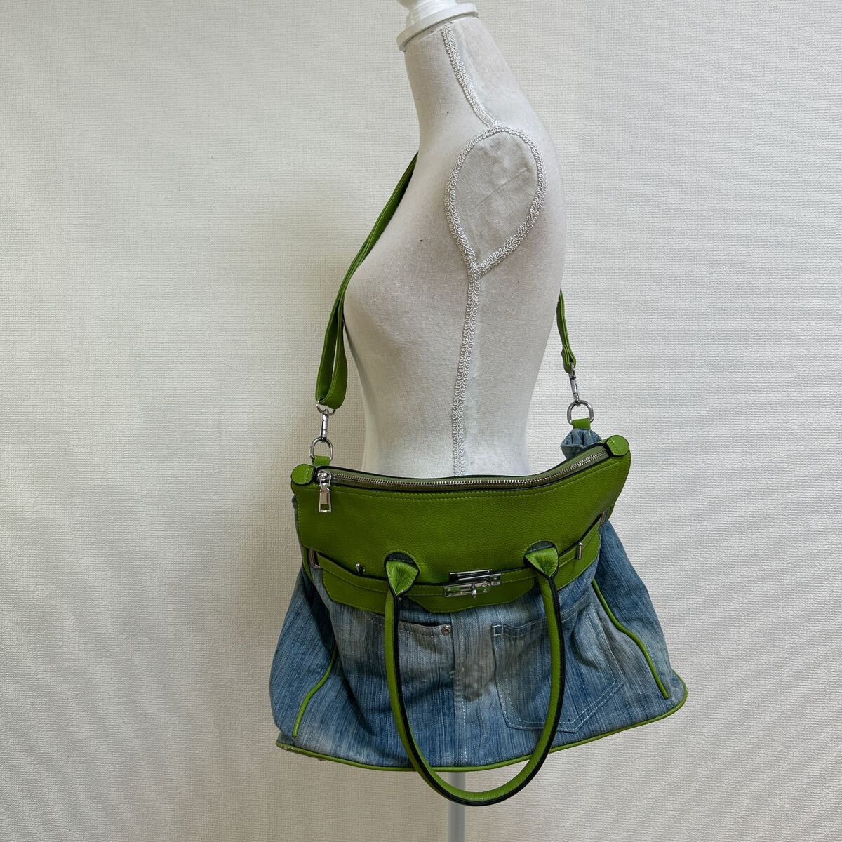 デニム生地と爽やかなライムグリーン色が素敵なお色です