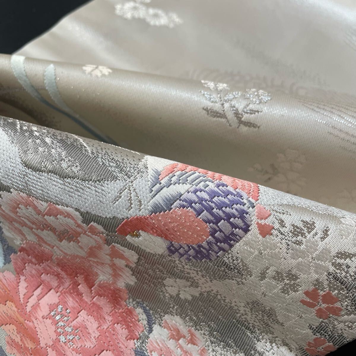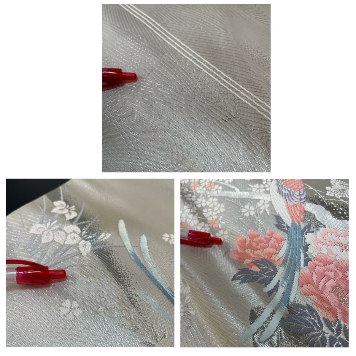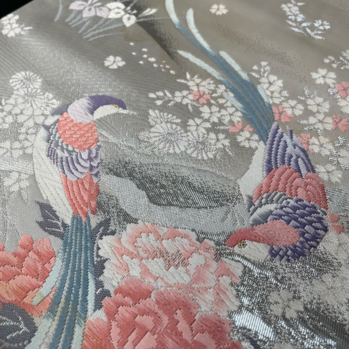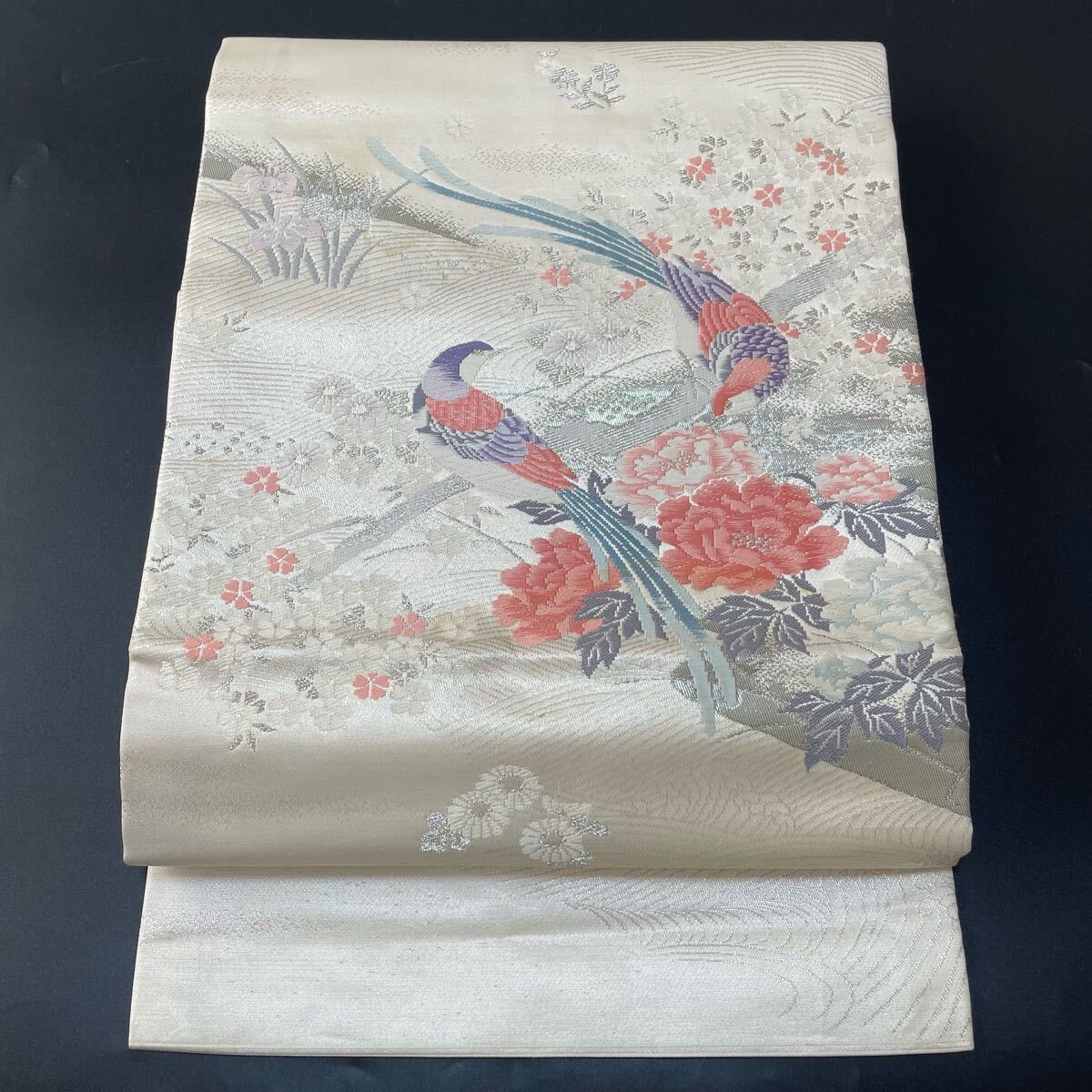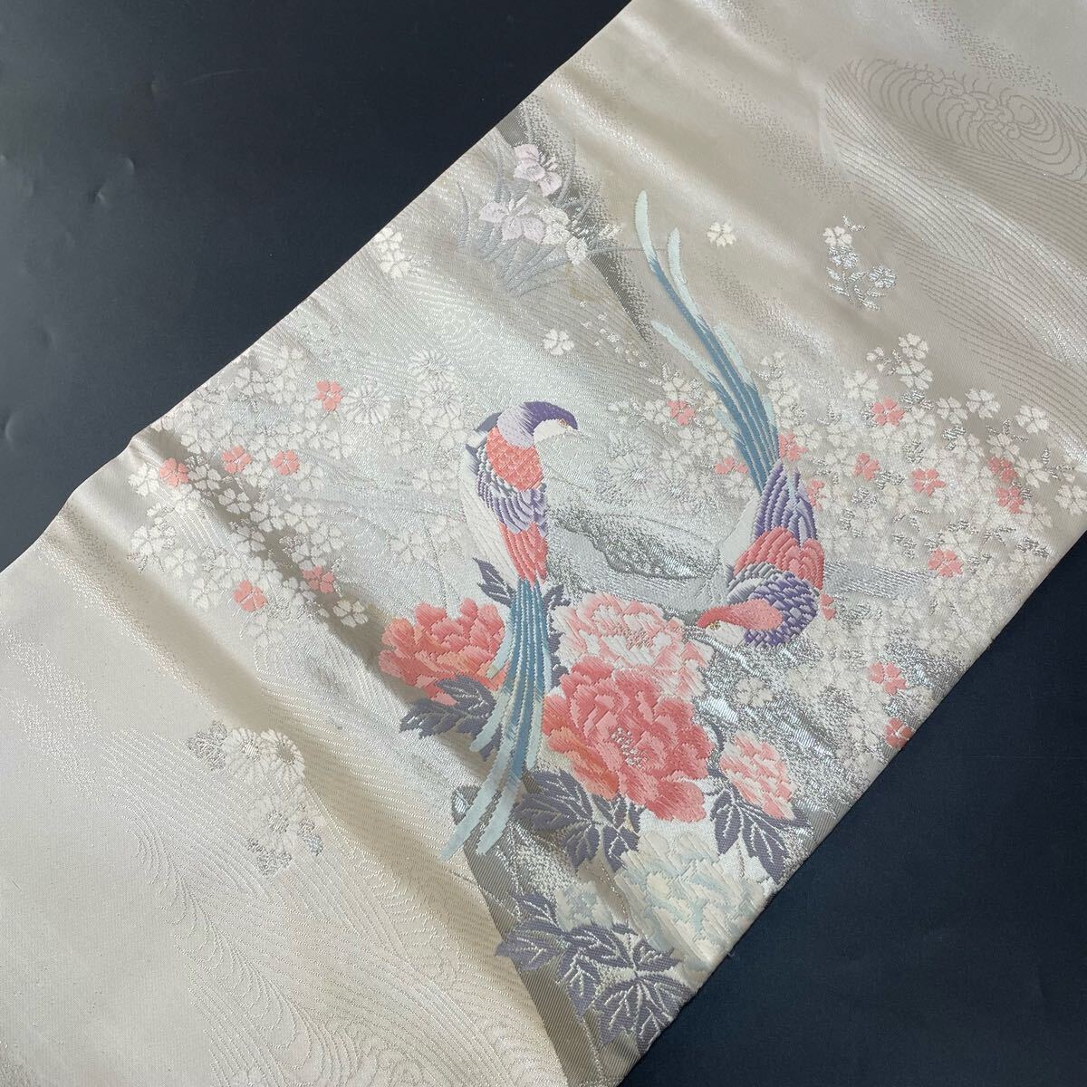 ・鳥と牡丹の模様がとても華やかで美しい九寸名古屋帯です。 ・たれ先に黒い汚れ、たれ先から50cmと70cm辺りに茶色いシミがあります。(写真10枚目) ・締め跡が無く、まだまだ着用もしていただますし、着付け練習やリメイク材料にもおすすめの帯となっております。 ・お安く出品致しますので、是非この機会にいかがでしょうか。 |