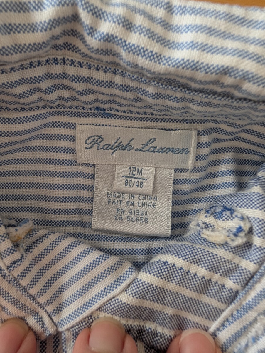 ラルフローレンの長袖シャツです。切り替えがありとってもおしゃれです。着用機会が少なく美品ですが、袖に小さな染みがあります。写真6枚目をご参照ください。