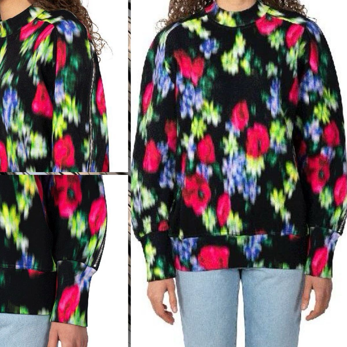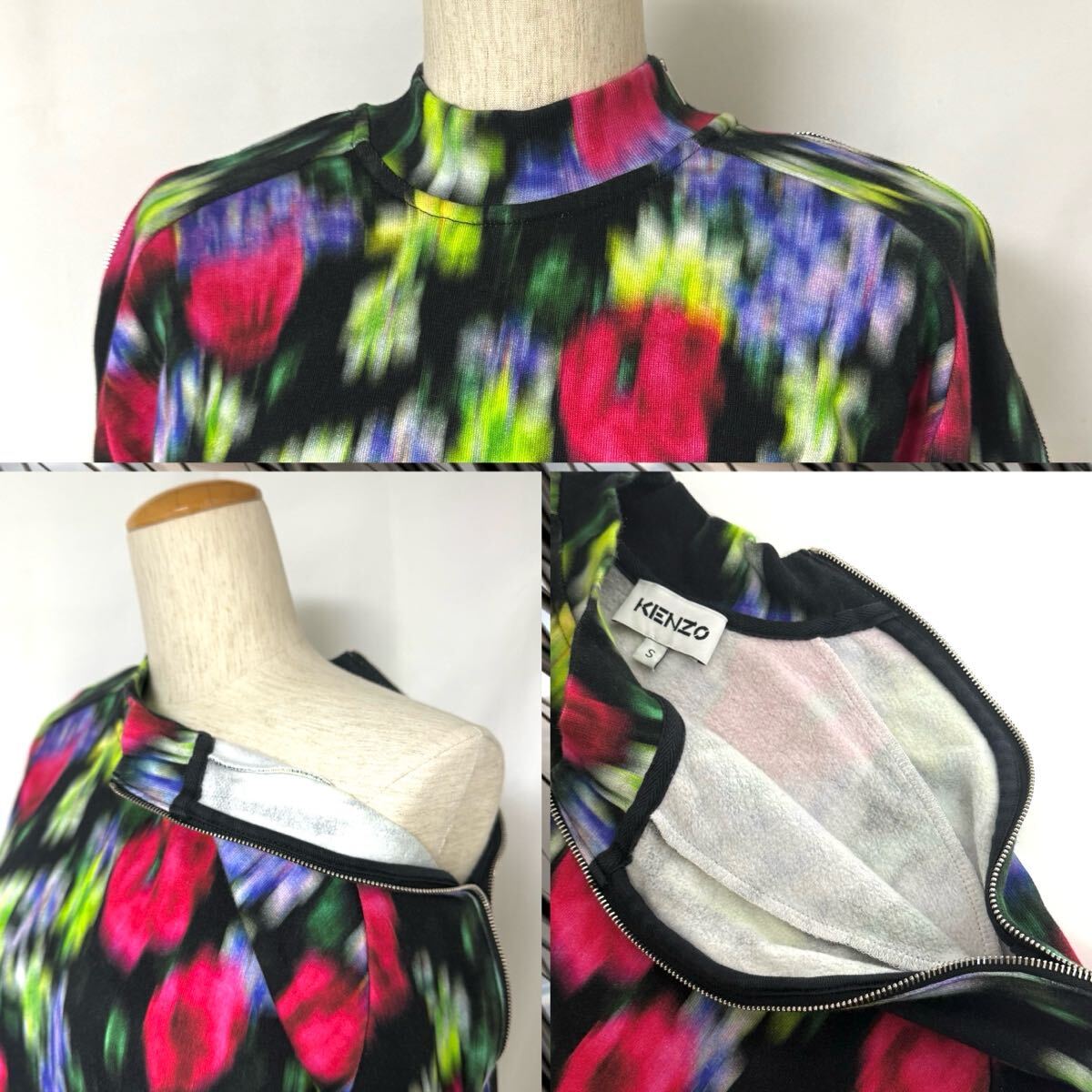 KENZOらしい花柄デザインに、首から袖先まで入るファスナーが良いアクセントになっております。