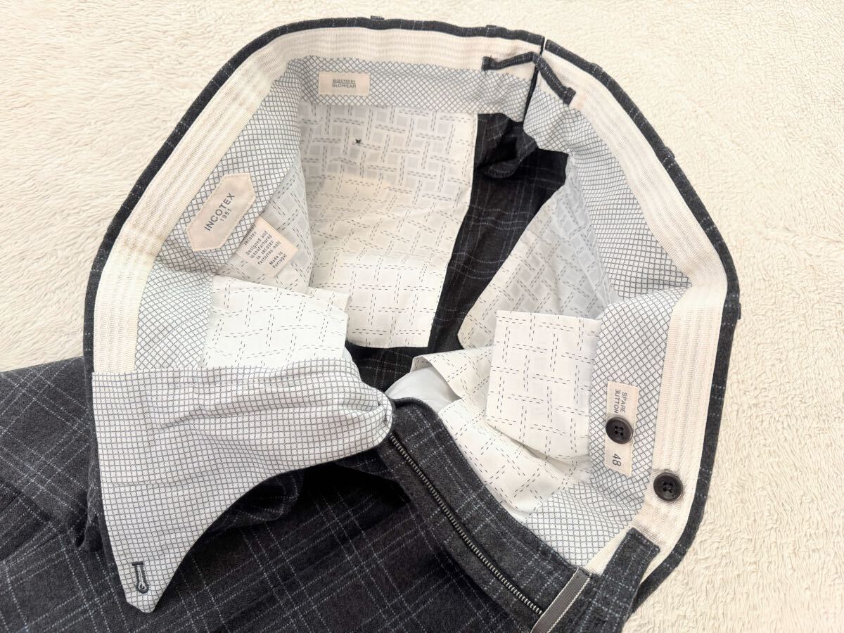 肌触りが良く上質なウール生地使いに仕立ての良さで動きやすく穿き心地もとても良いです。