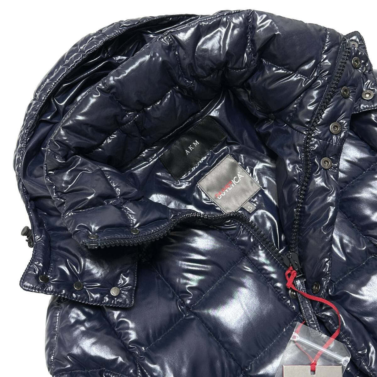 LEON掲載 定価14.3万 AKM×DUVETICA SHYNY NYLON SQUARED HOODED DOWN JKT Sサイズ 紺 ダウンジャケット akm junhashimoto