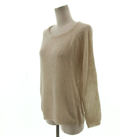 未使用品 ミッシュマッシュ MISCH MASCH ニット セーター 長袖 ラグランスリーブ バックリボン ビーズ ラインストーン ベージュ M