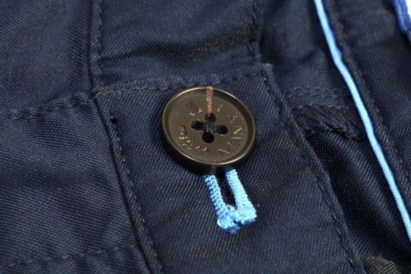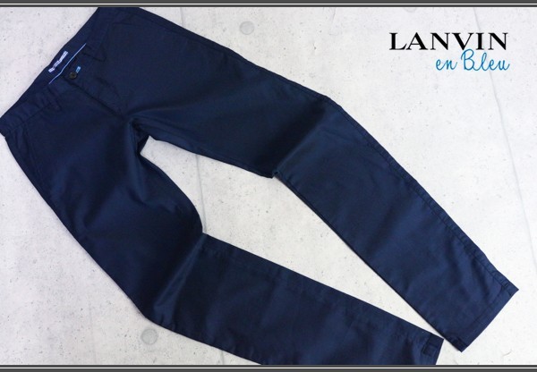 新品 ランバン オン ブルー 春夏 日本製 高密度ストレッチ シャイニー コットン パンツ46/S 濃紺 定価2.4万円/LANVIN en Bleu/