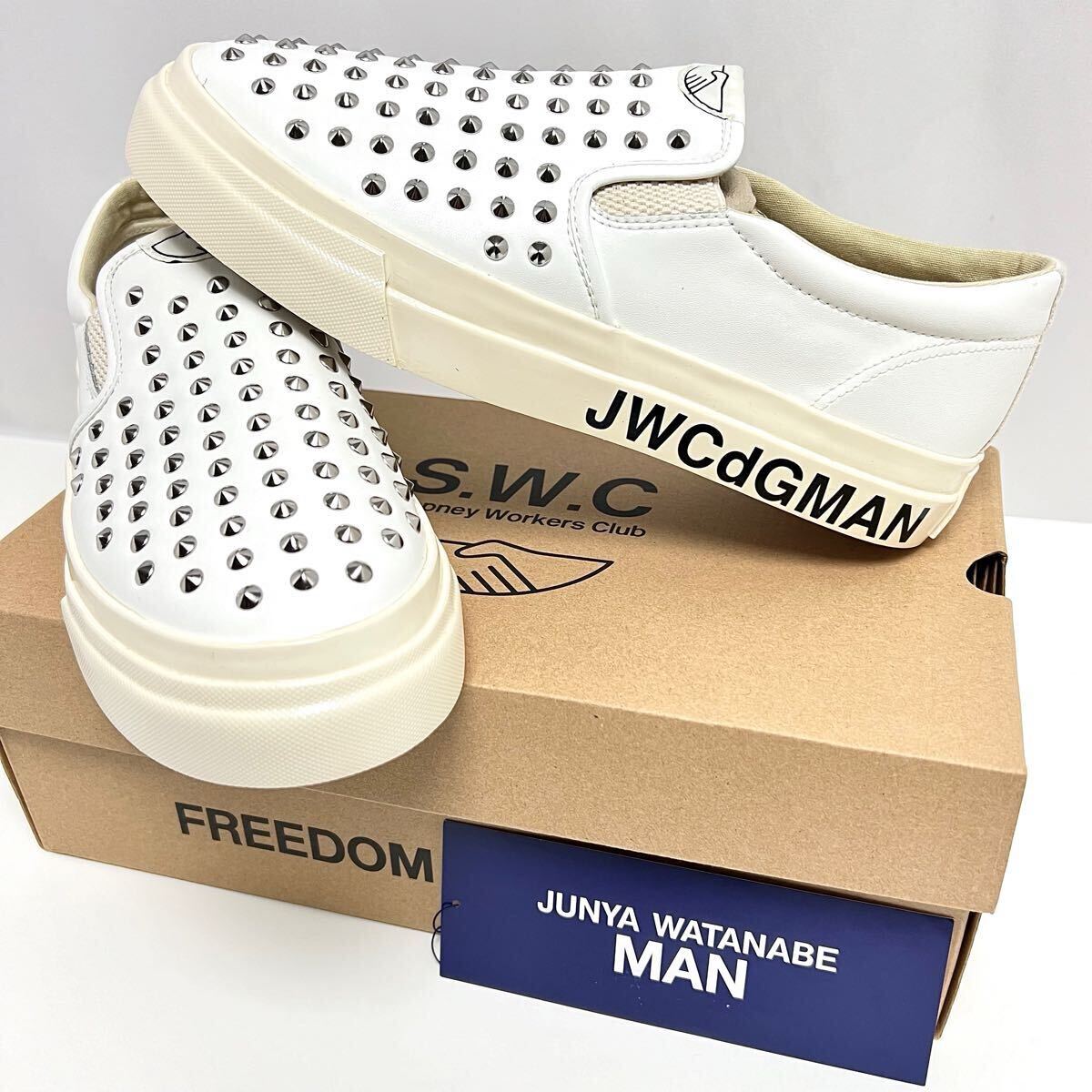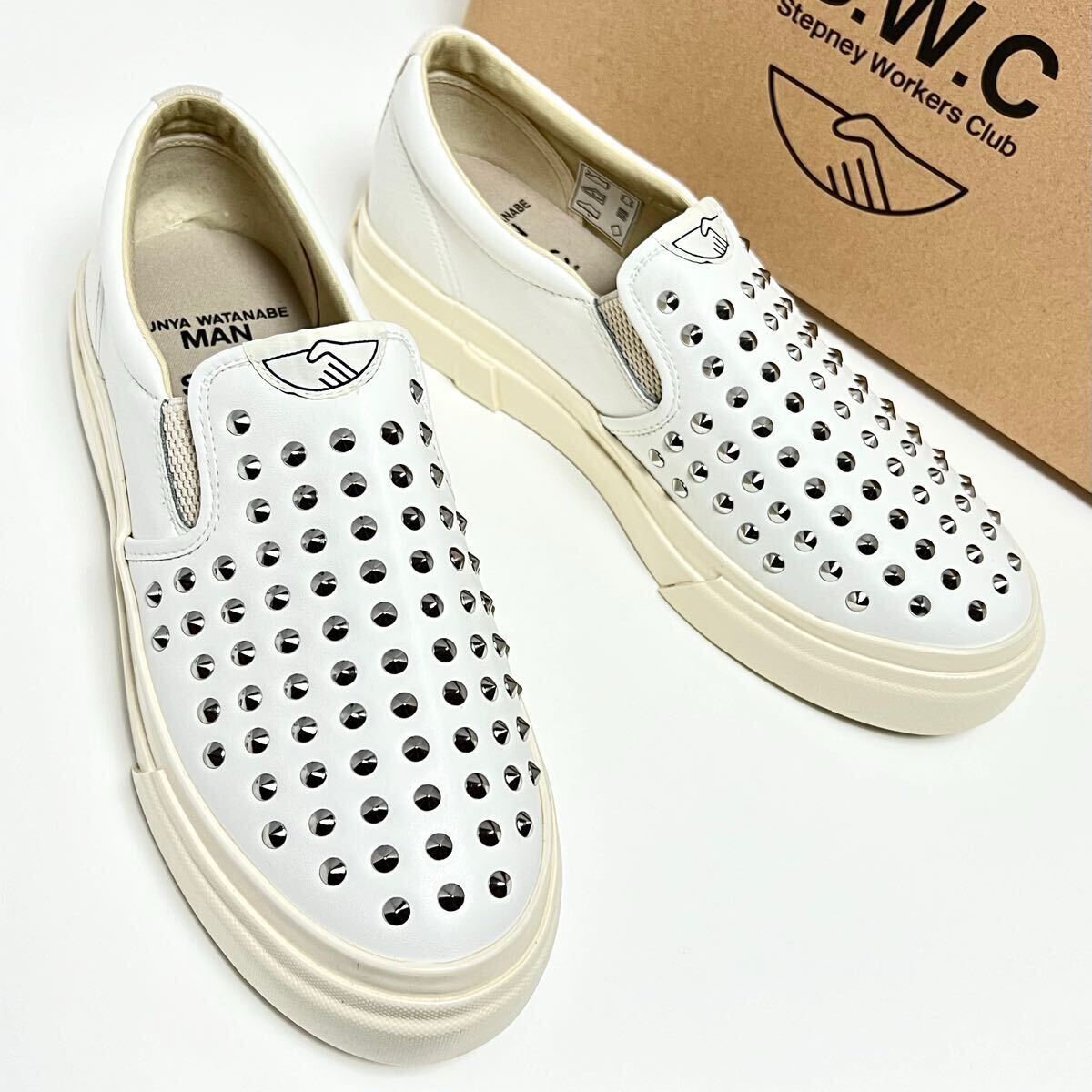 26cm 新品 コムデギャルソン コラボ スタッズ レザー スニーカー JUNYA WATANABE スリッポン シューズ ステファニー ワーカーズ クラブ 白