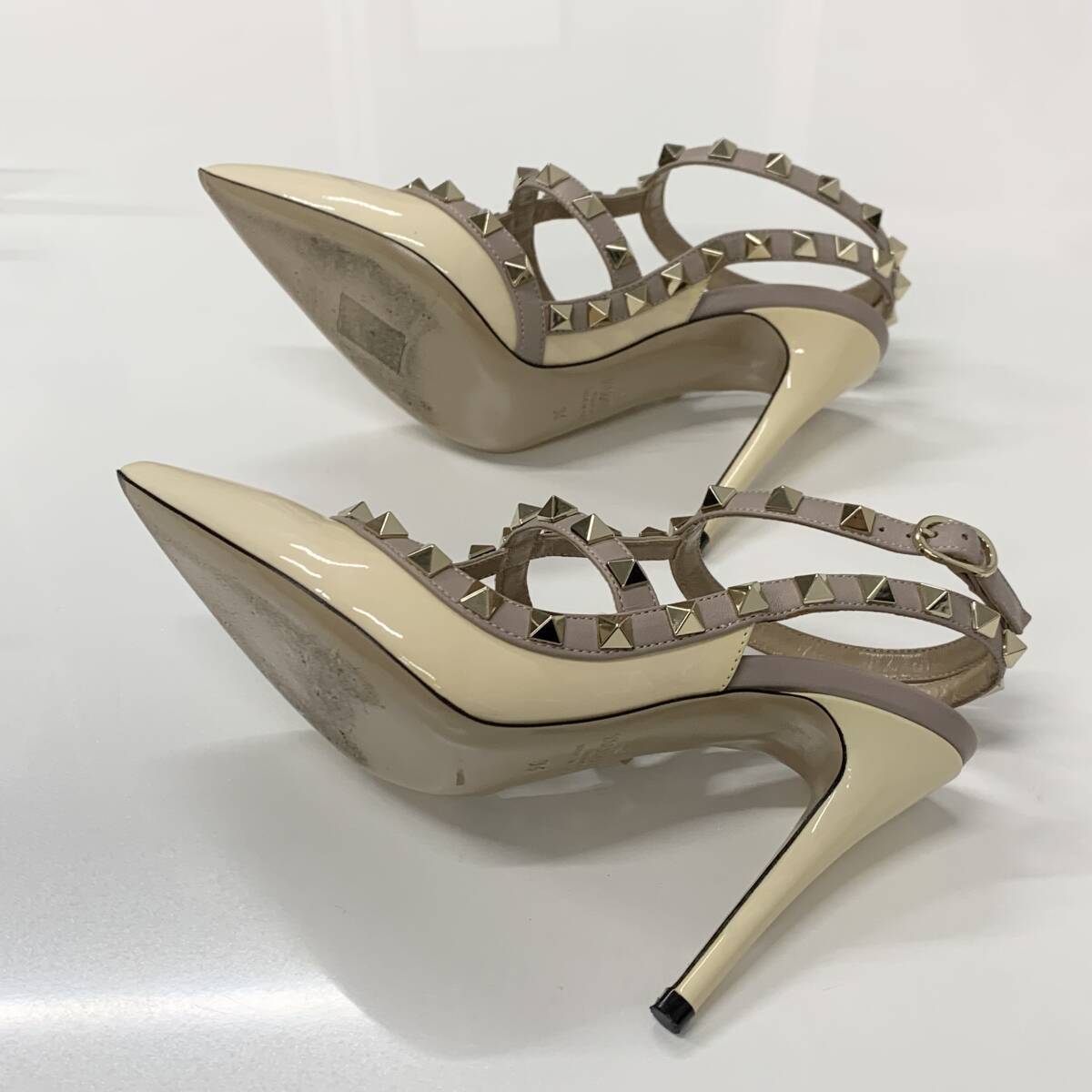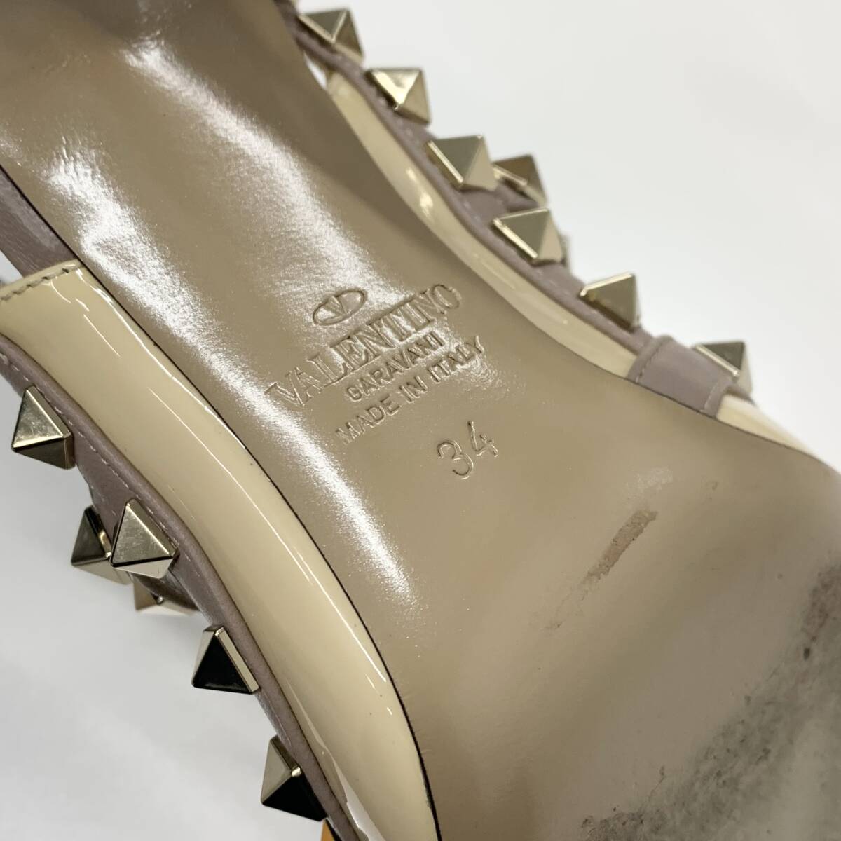 M11858 ヴァレンティノ パテント レザー ロックスタッズ ストラップ パンプス ベージュ ゴールド