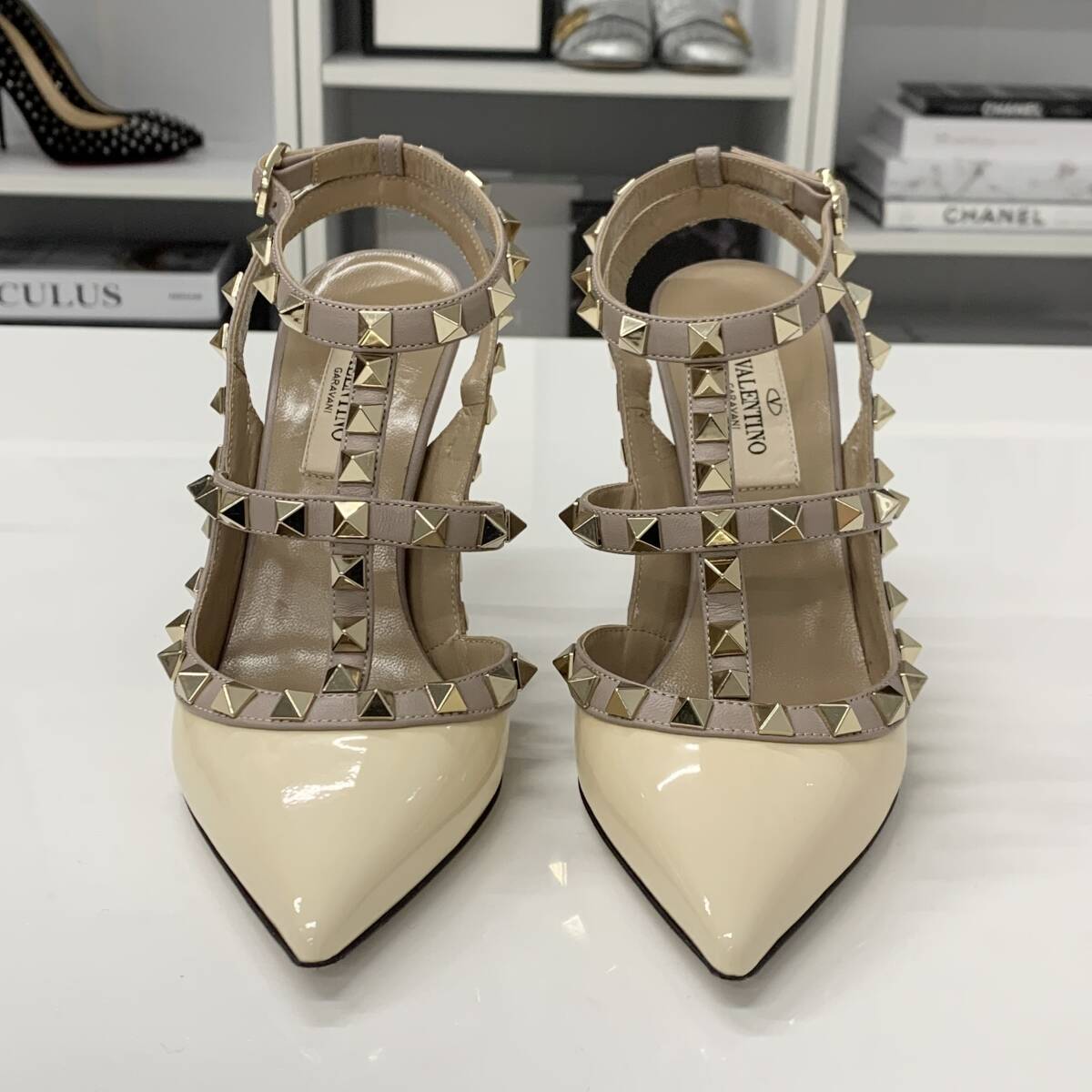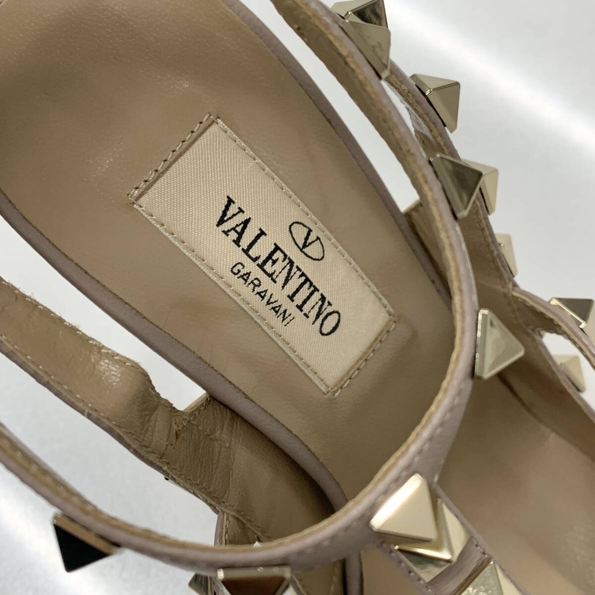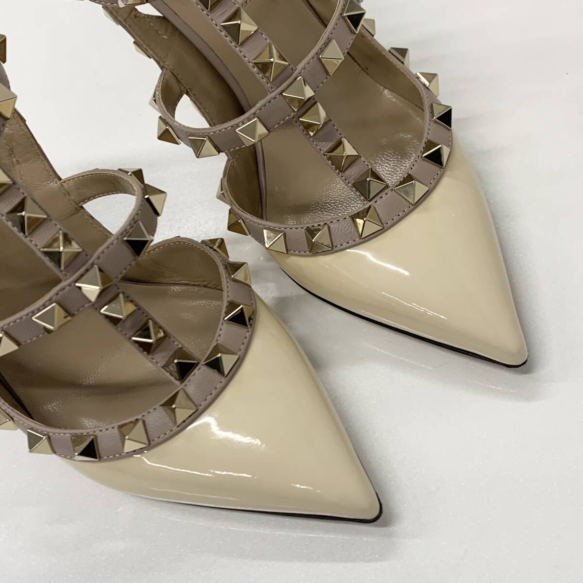 ヴァレンティノ パテント レザー ロックスタッズ ストラップ パンプス ベージュ ゴールド