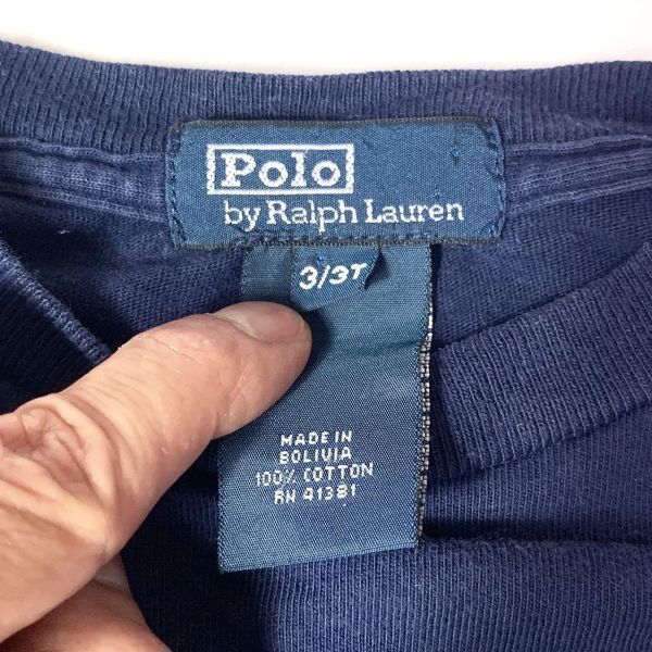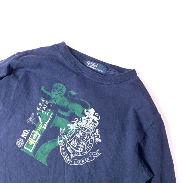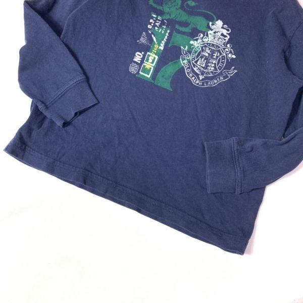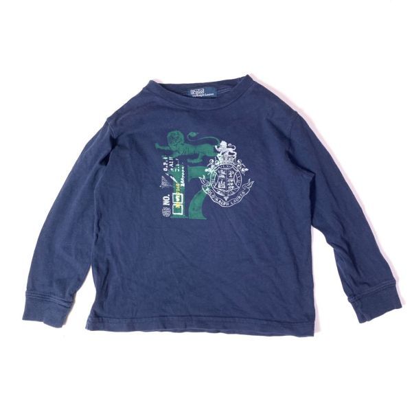 ■KIDS Polo by Ralph Lauren ラルフローレン ナンバリング ライオン プリント 長袖Tシャツ/古着 アメカジ ネイビー 紺色 ロンT 子供服■
