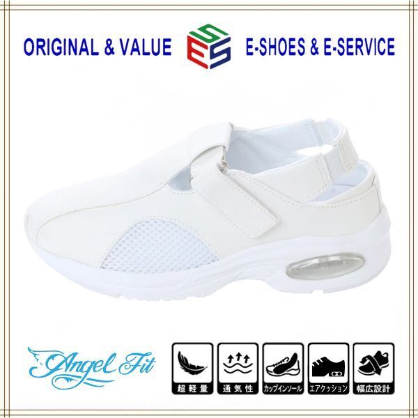 B品 レディース ナースシューズ Mサイズ 23.0cm 23.5cm ホワイト ルームシューズ 上履き 上靴 介護靴 ベルクロ バンド メッシュ 16546