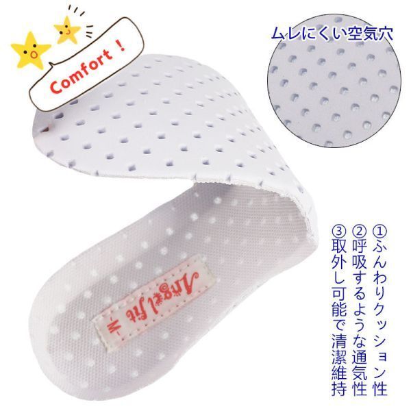 取り外せるカップインソールは洗濯可能、靴の中をいつも清潔な状態にでき、なおかつクッション性と通気性を備えているので、履き心地が抜群。お好みで市販のインソールと交換することもできます。