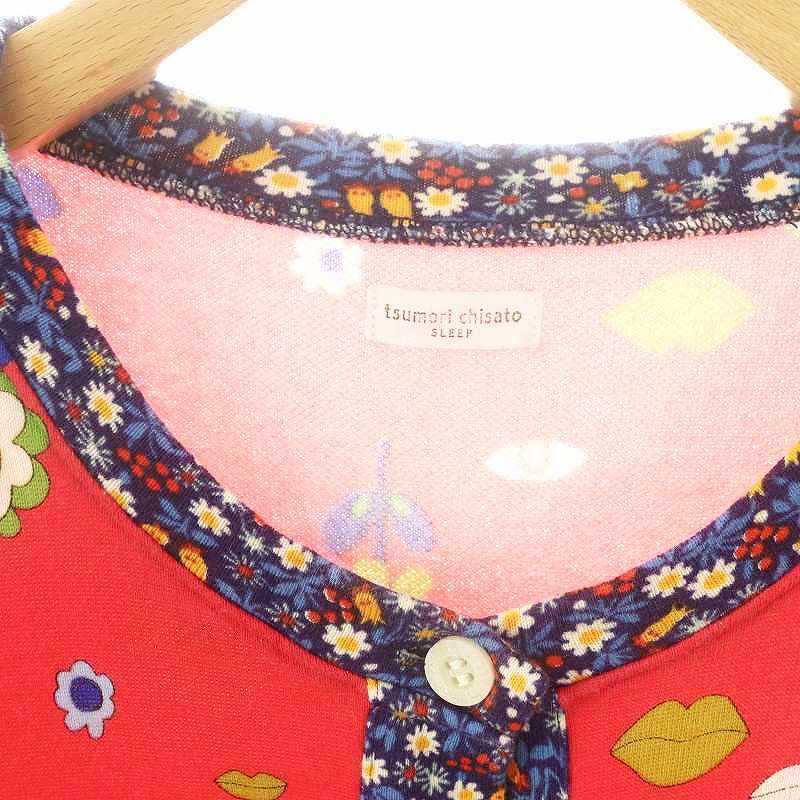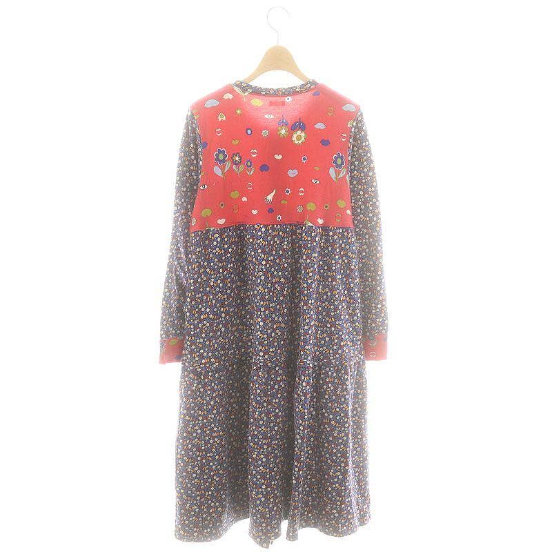 ツモリチサト スリープ tsumori chisato SLEEP 花柄 ワンピース ミモレ ロング 長袖 M 紺 ネイビー 赤 レッド /AT ■OS レディース