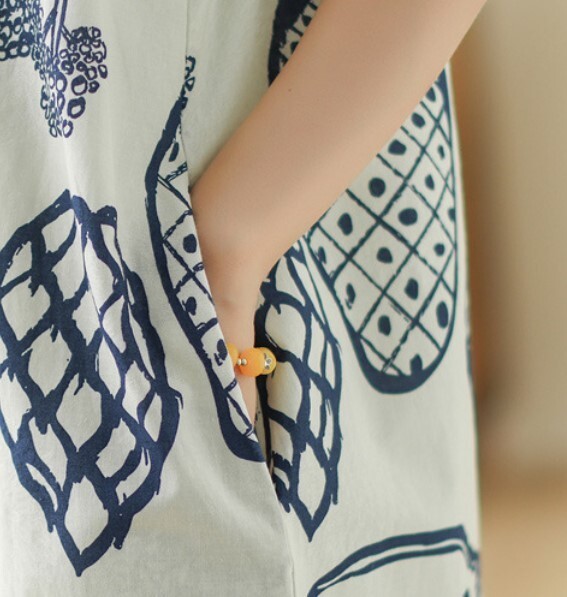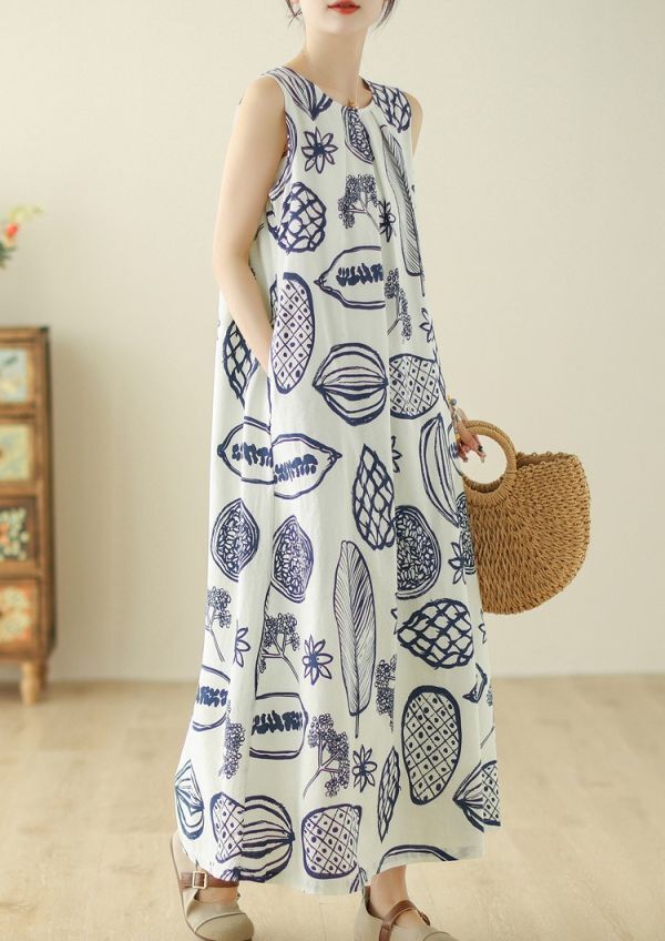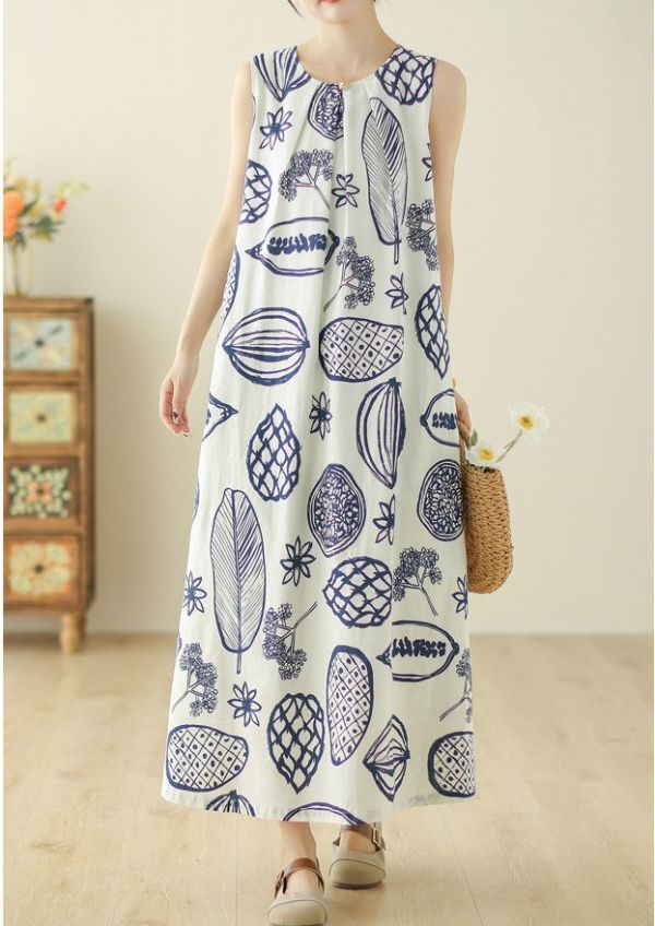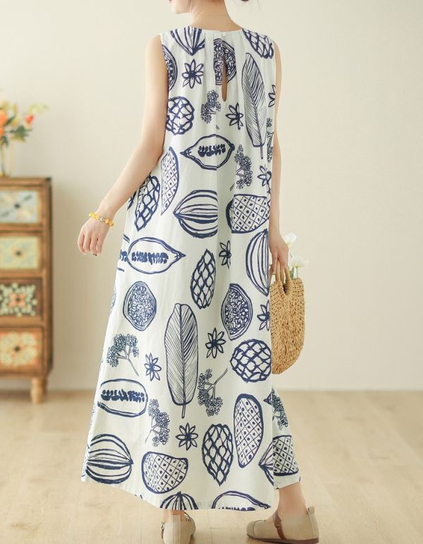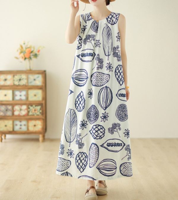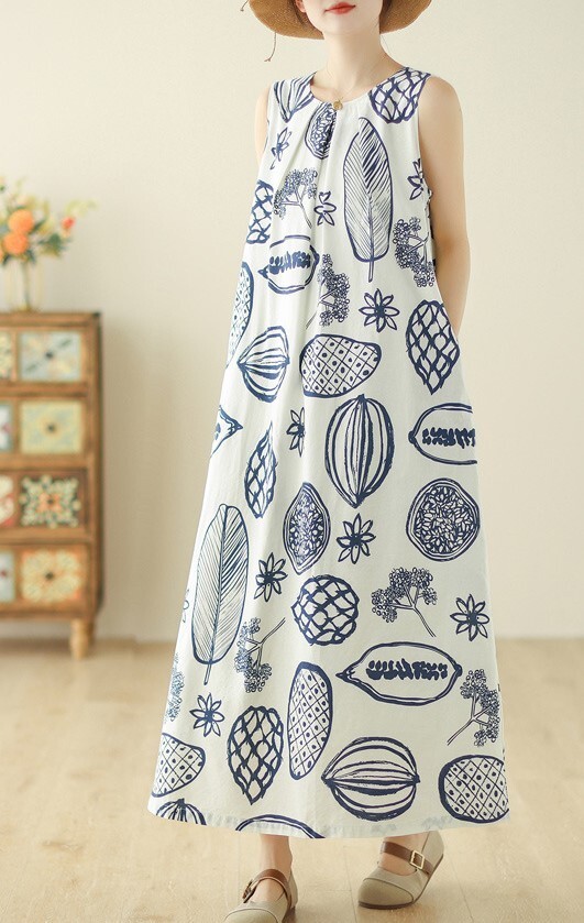 レディース ワンピース ノースリーブ クルーネック プリント柄 カジュアル FY06