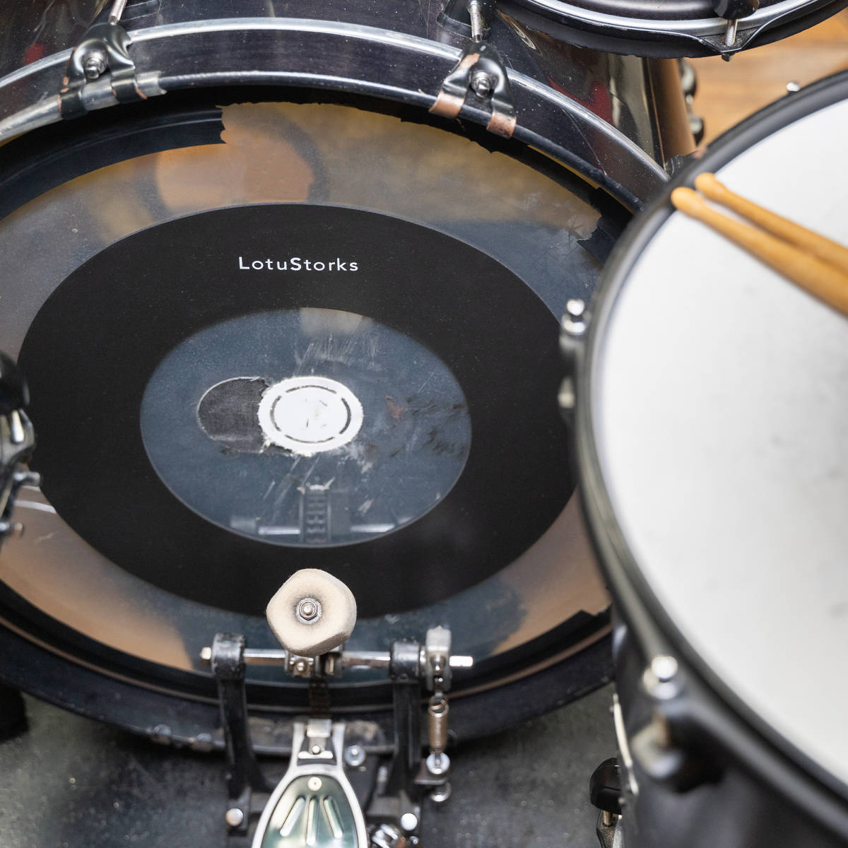 スネアヘッドに設置するリングミュートです。