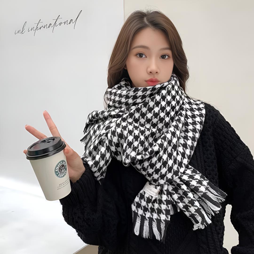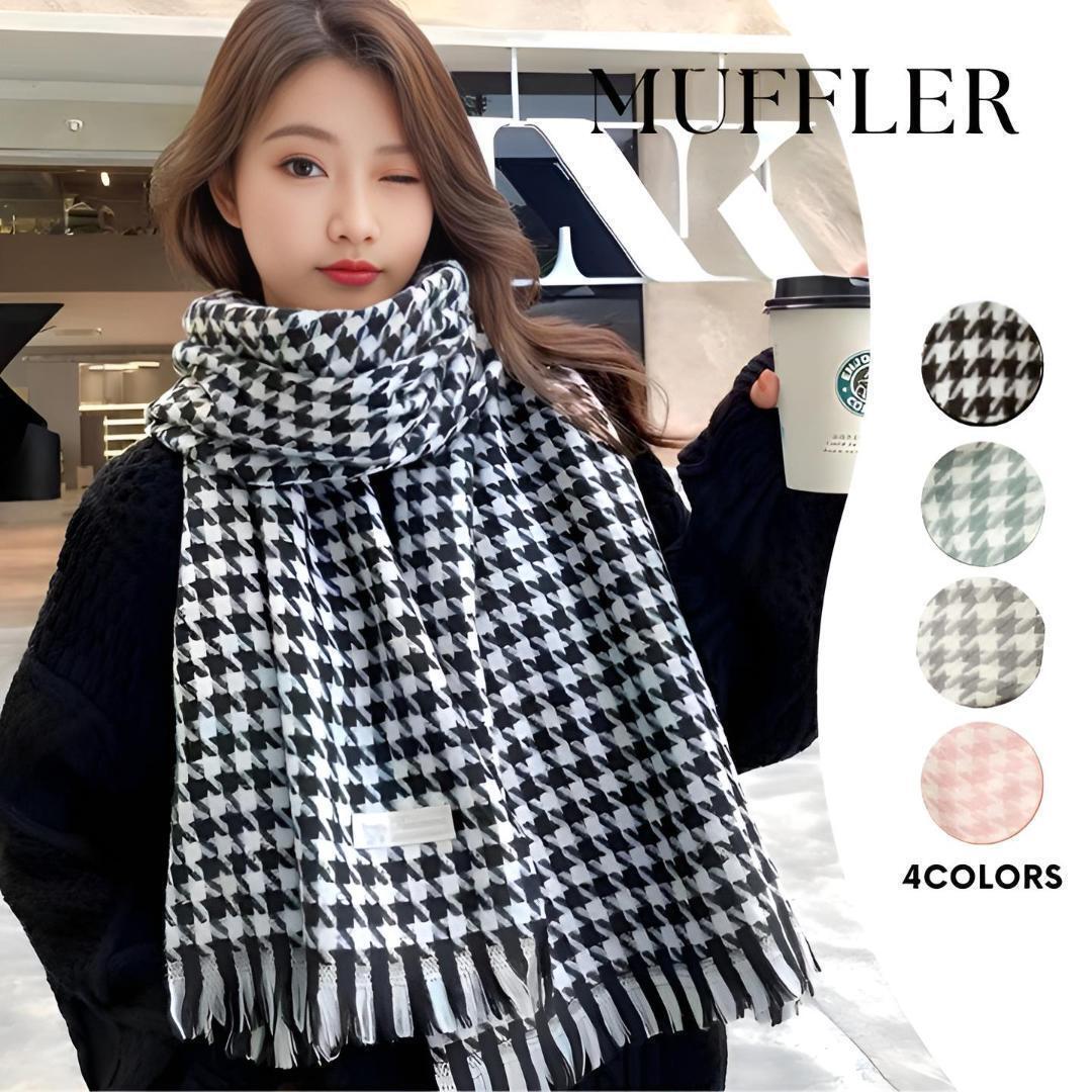 【特徴】『定番マシュマロタッチ千鳥格子柄マフラー』