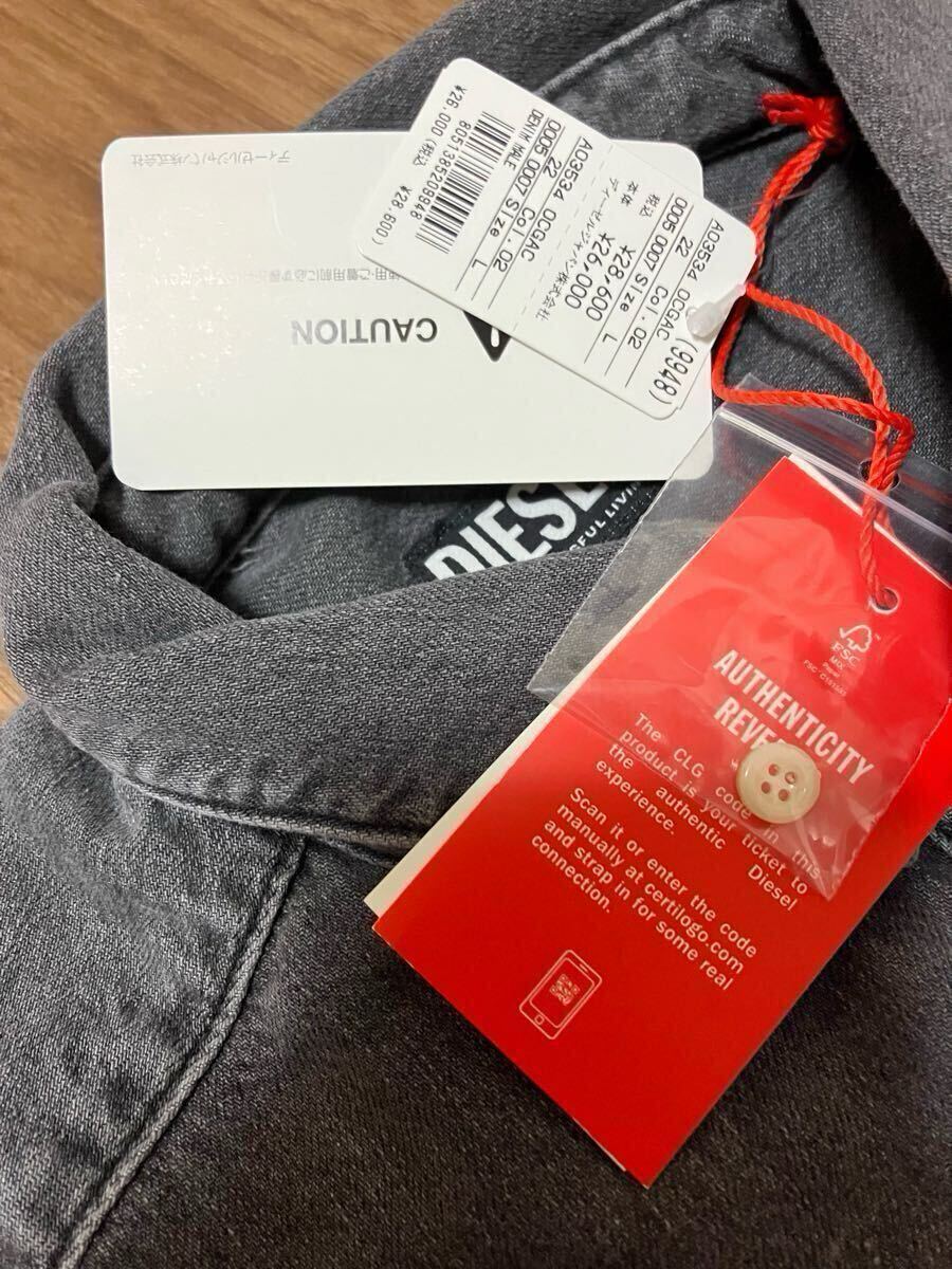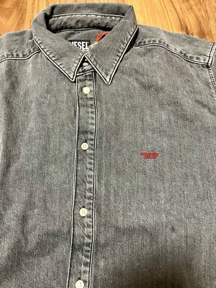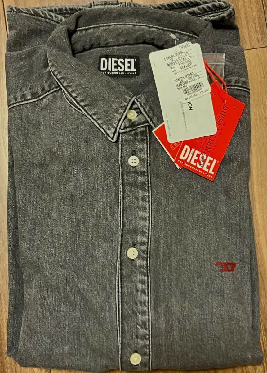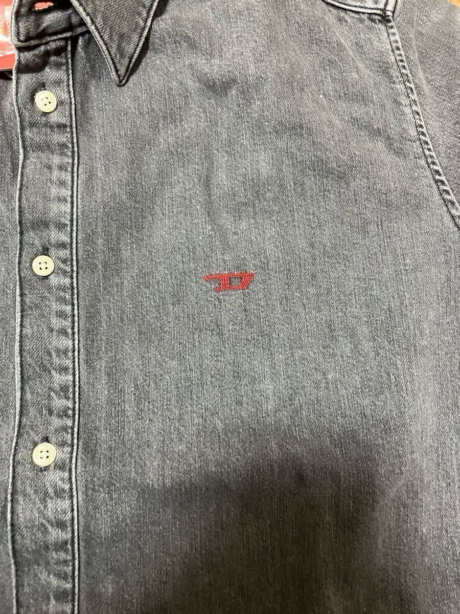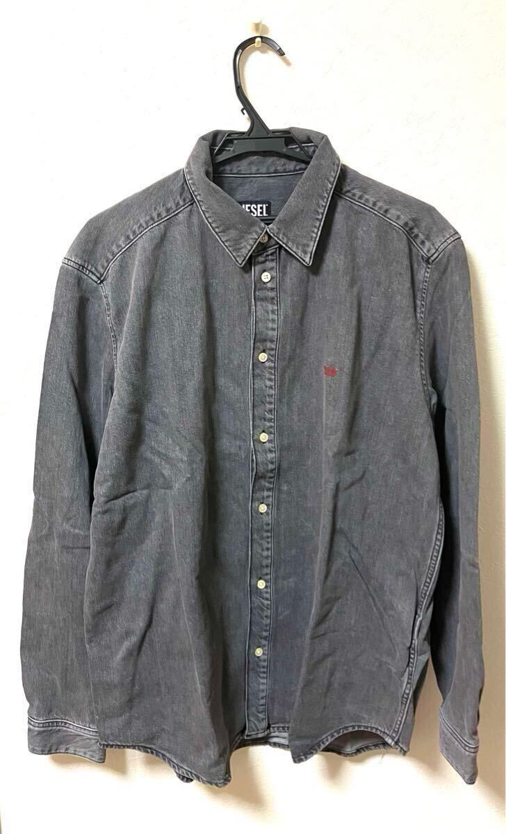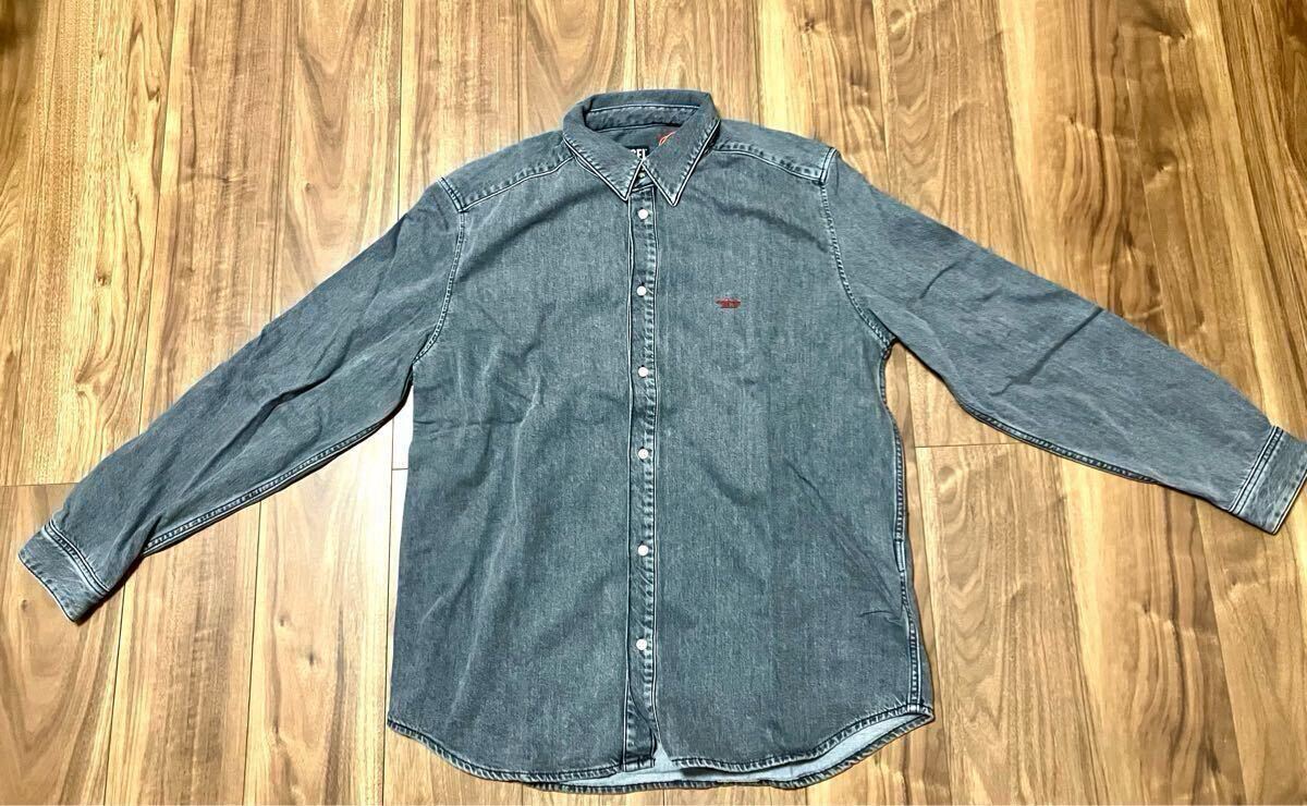 薄いブラックカラーで胸元にディーゼルのロゴがワンポイントで刺繍が施されたデニムシャツです。